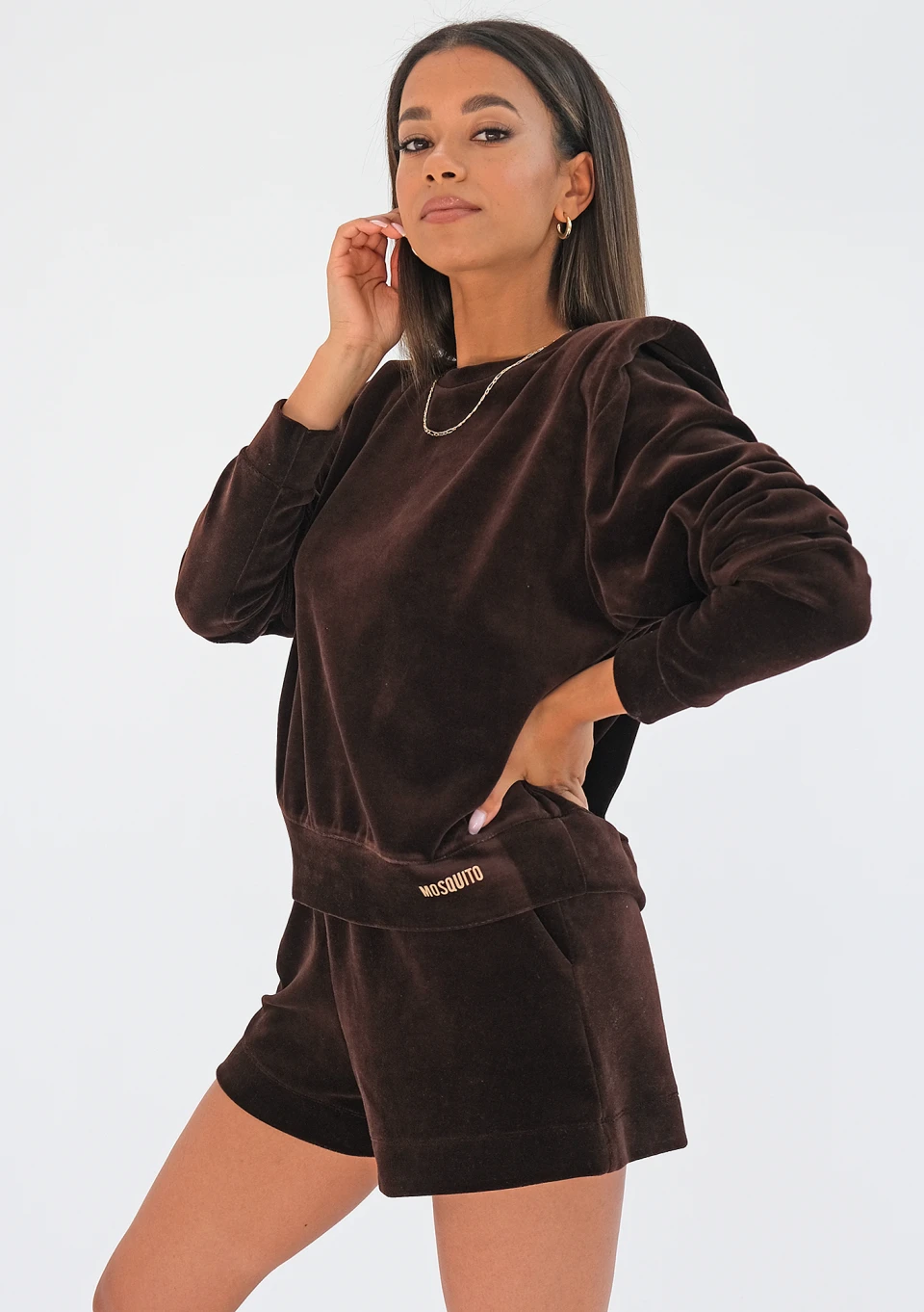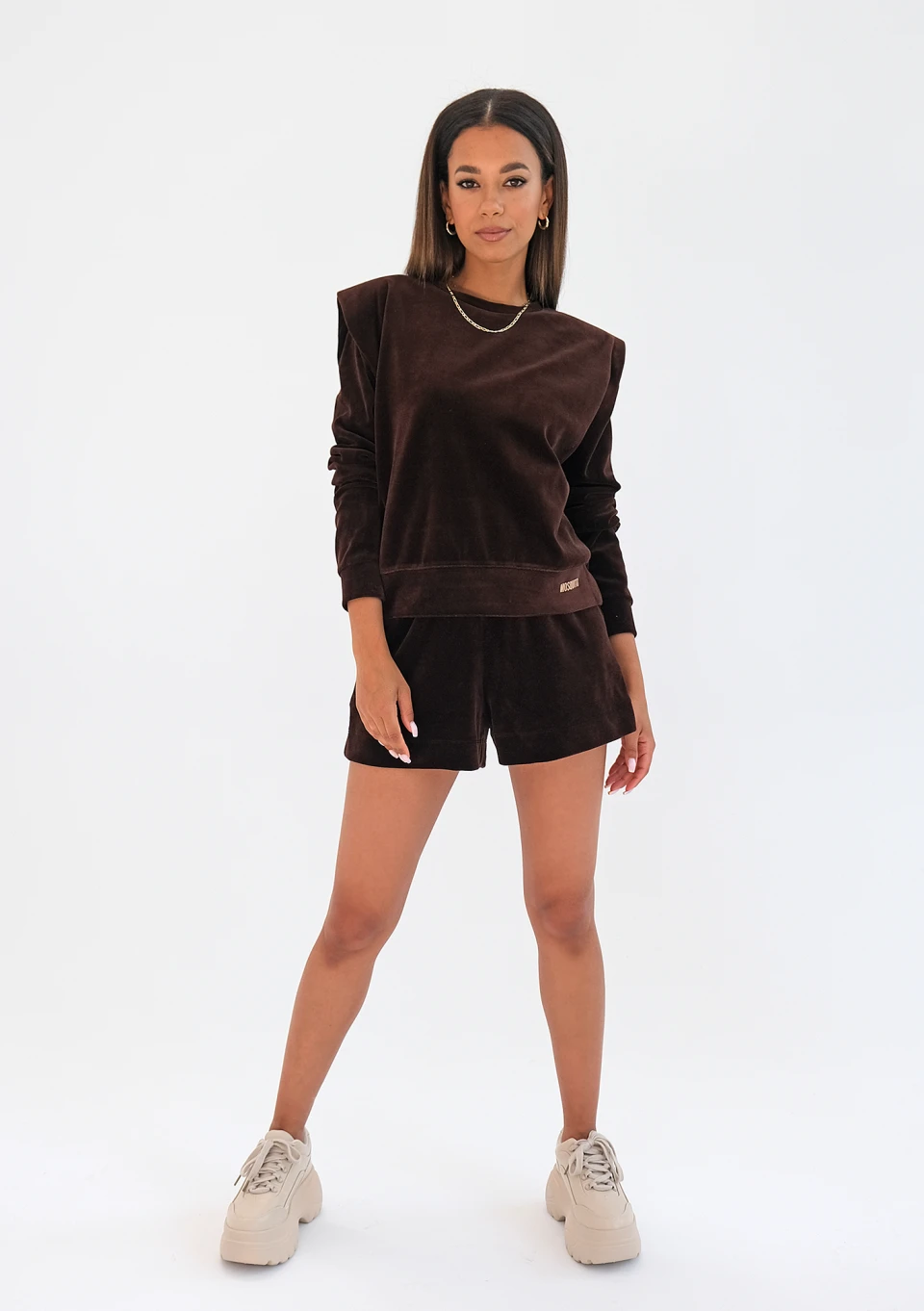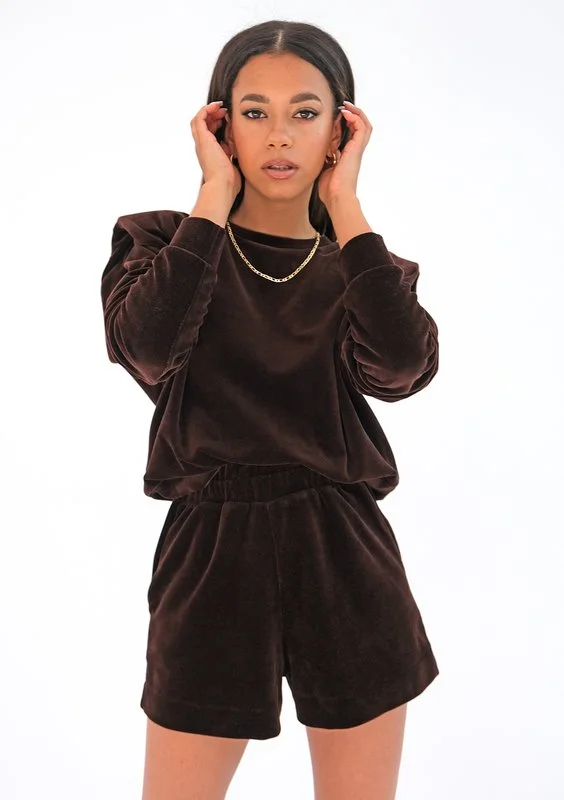 Lizzi - Welurowe szorty dresowe Brązowe
