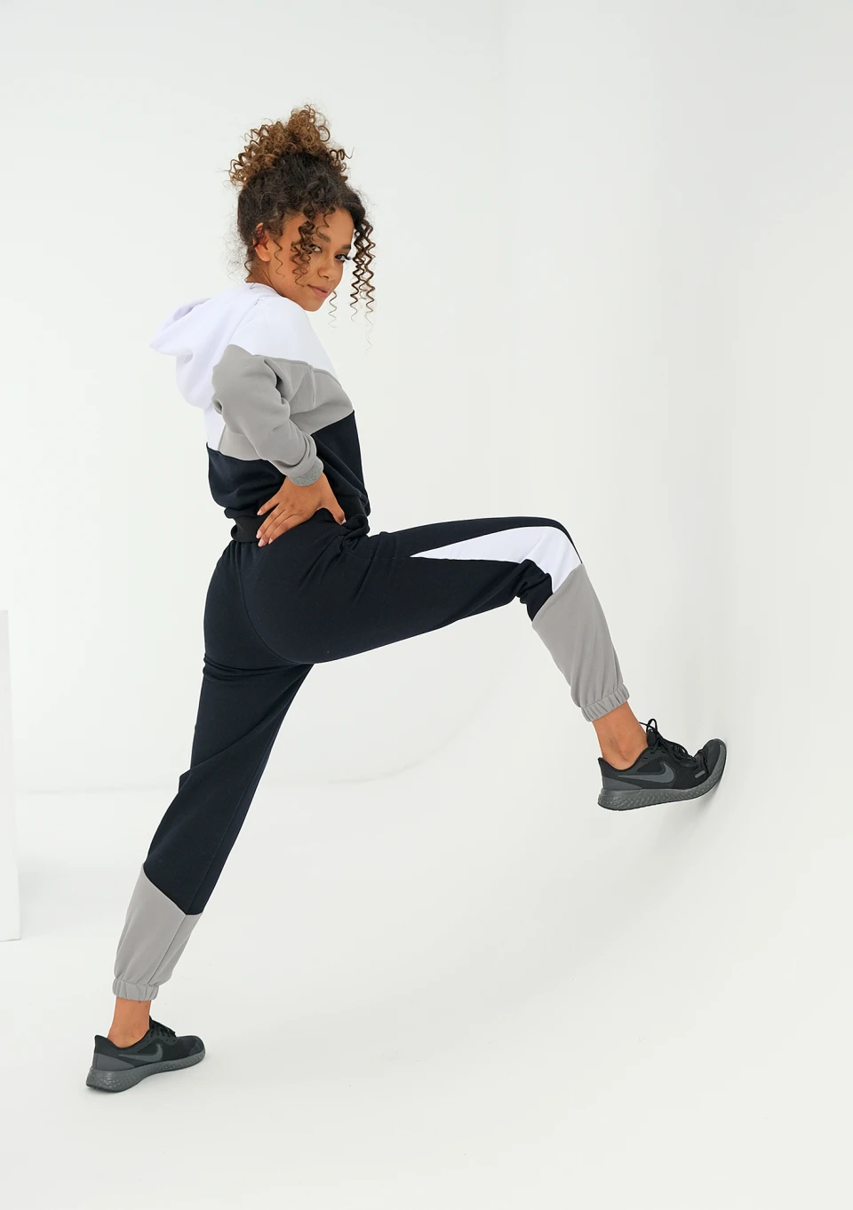 Luźne spodnie dresowe, które wyróżniają się ciekawym wzorem trzech kolorów. Otulą Cię miękkim materiałem i zapewnią pełen komfort. Wykonane z dzianiny pętelkowej, o lekkim i przewiewnym splocie włókien.