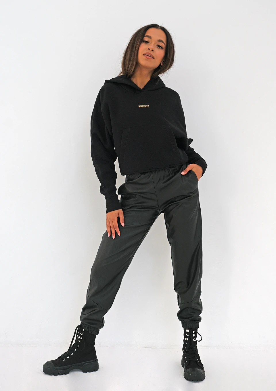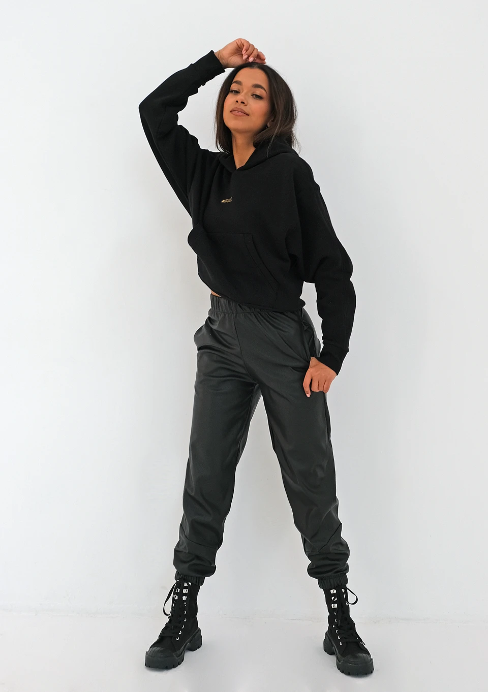 Cosmo - Spodnie joggery z eko skóry Czarne