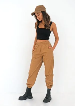 Cosmo - Spodnie joggery z eko skóry Beżowe