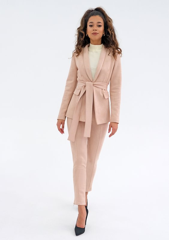 Vosca - Spodnie cygaretki z imitacji zamszu Nude