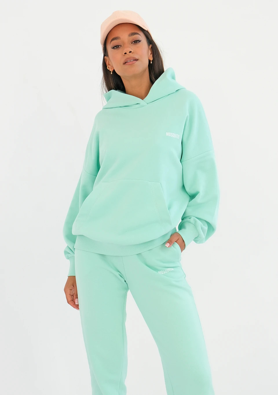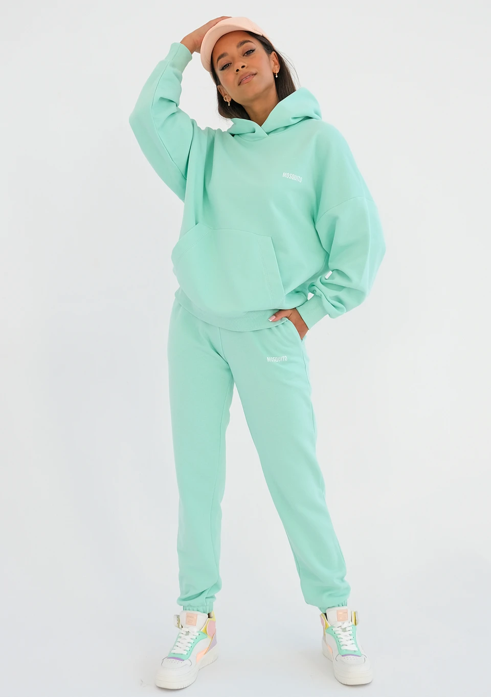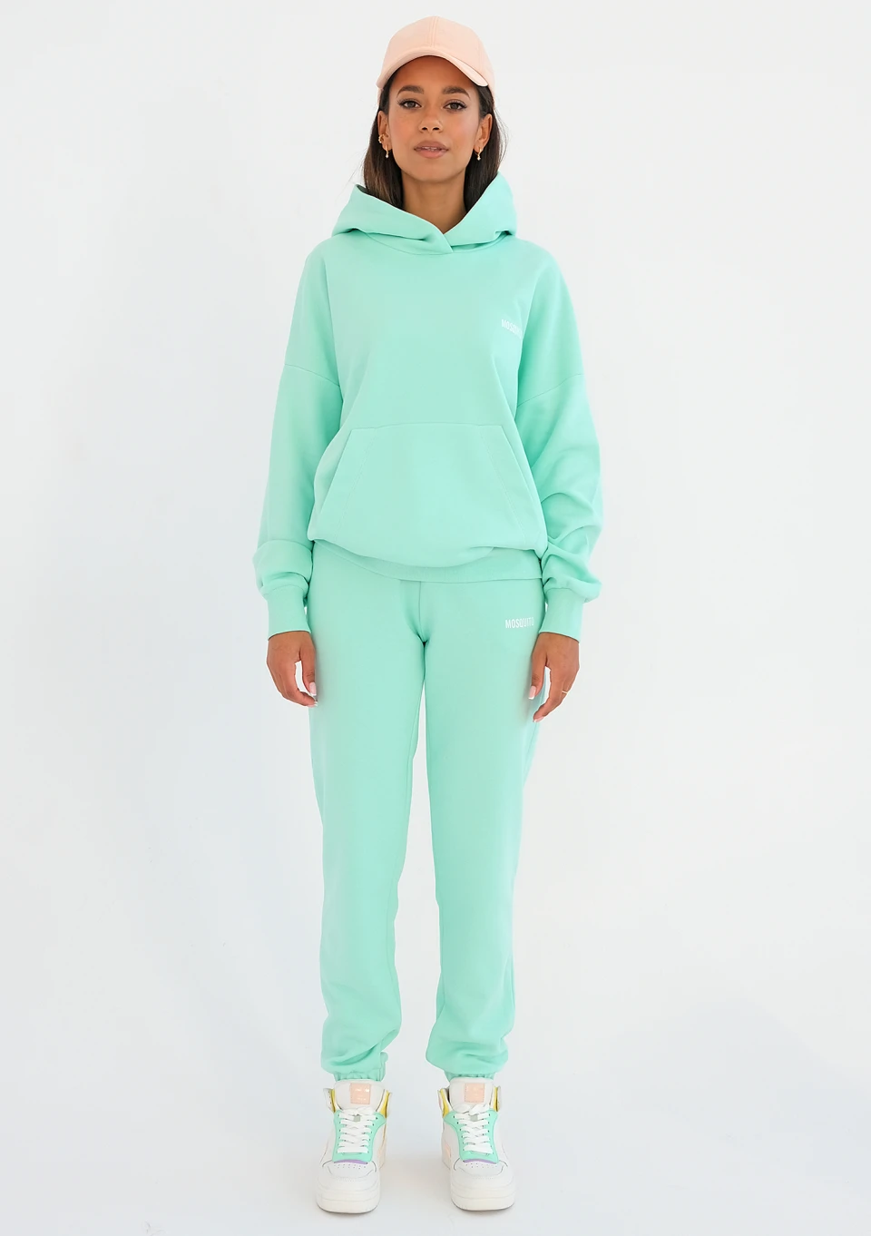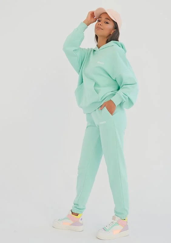 Damskie spodnie dresowe w wyjątkowym wydaniu - ich miętowy, neonowy odcień wykreuje niepowtarzalną i pełną wakacyjnego luzu stylizację. Fason Pure posiada bardzo luźne nogawki, dwie kieszenie i ozdobne, białe logo.