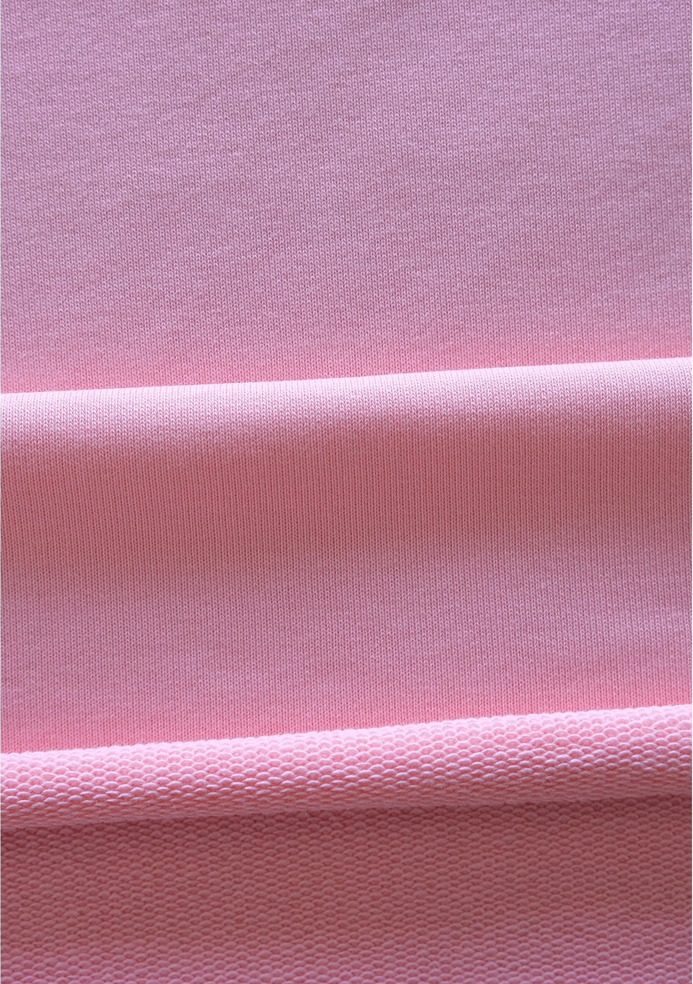 Skład 90% bawełna, 10% poliester. Jest to materiał o średniej gramaturze, z pętelkową fakturą od wewnątrz i wykończeniem zapewniającym dodatkową miękkość. Ostatnie zdjęcie ukazuje obie strony dzianiny.