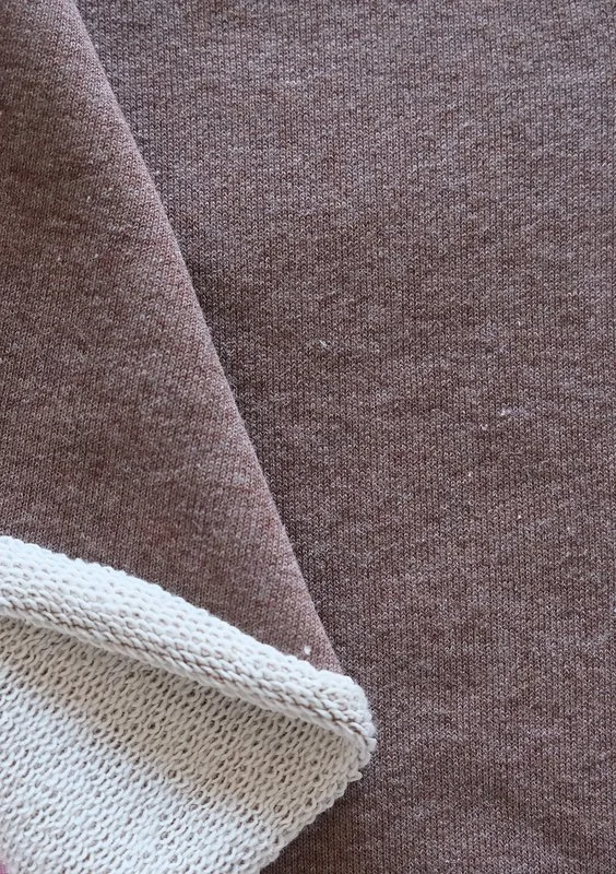 Skład 90% bawełna, 10% poliester. Jest to materiał o średniej gramaturze, z pętelkową fakturą od wewnątrz i wykończeniem zapewniającym dodatkową miękkość. Ostatnie zdjęcie ukazuje obie strony dzianiny.