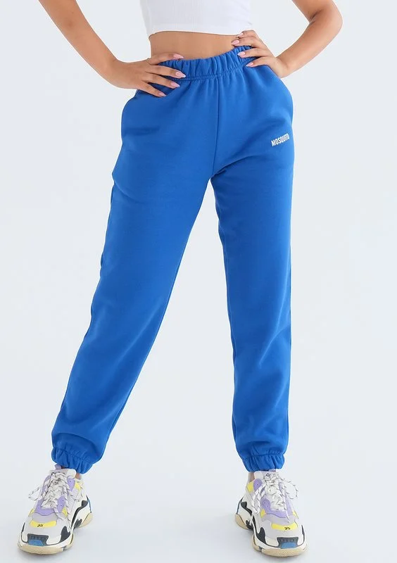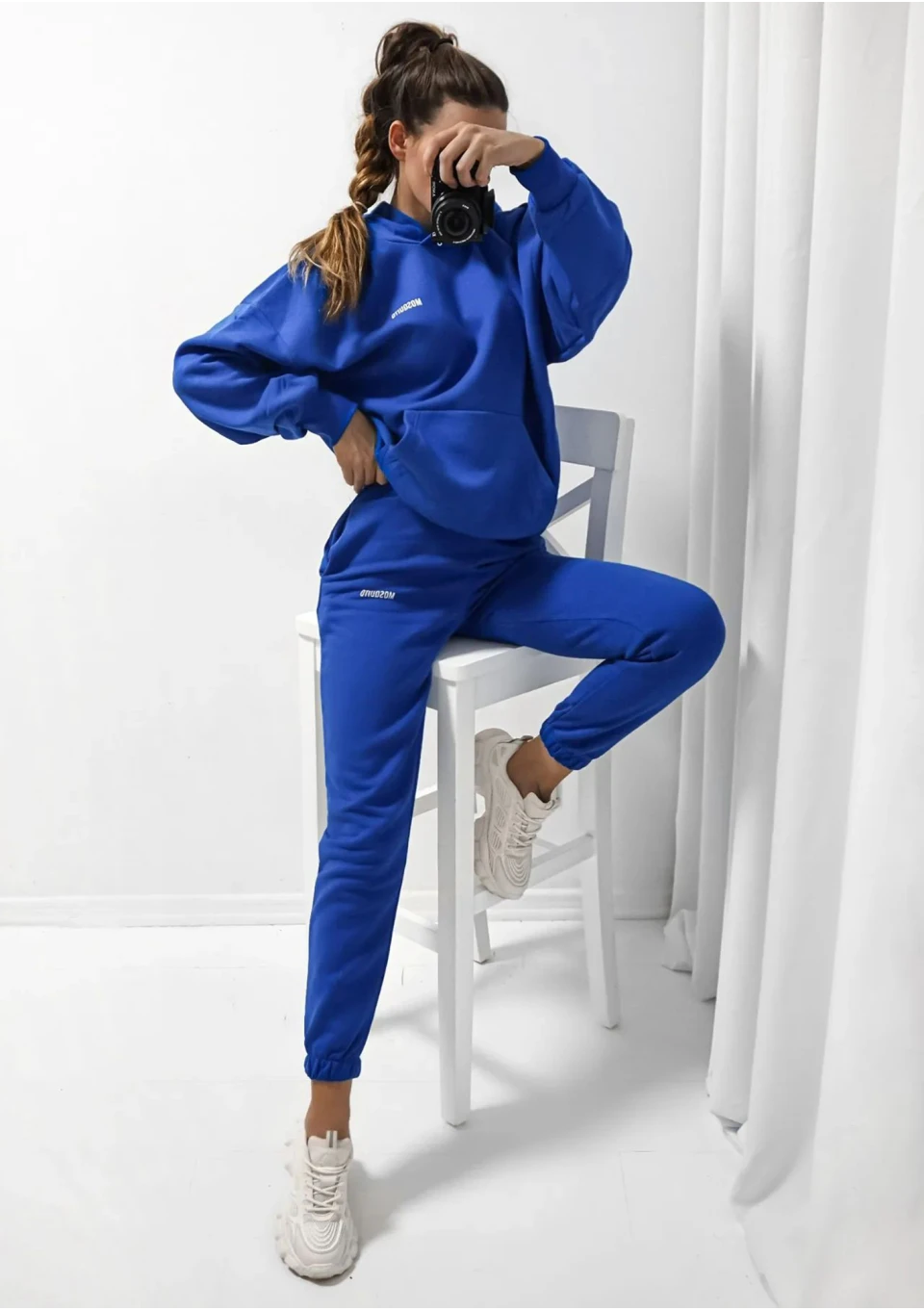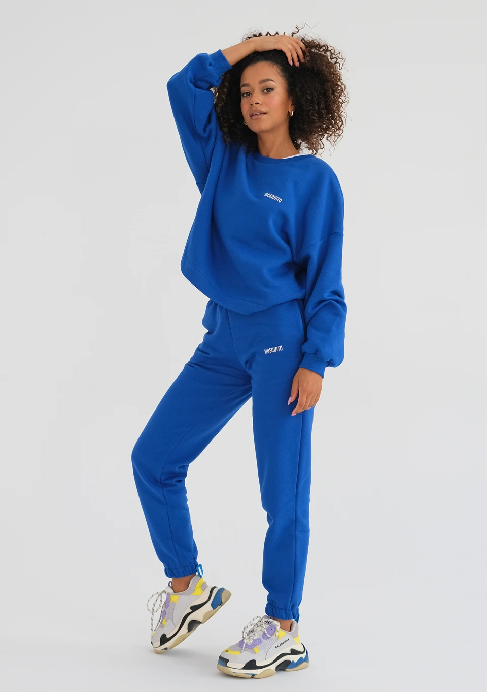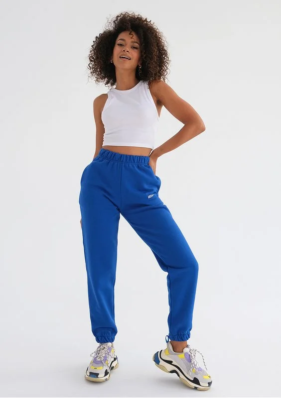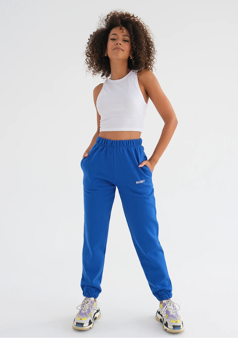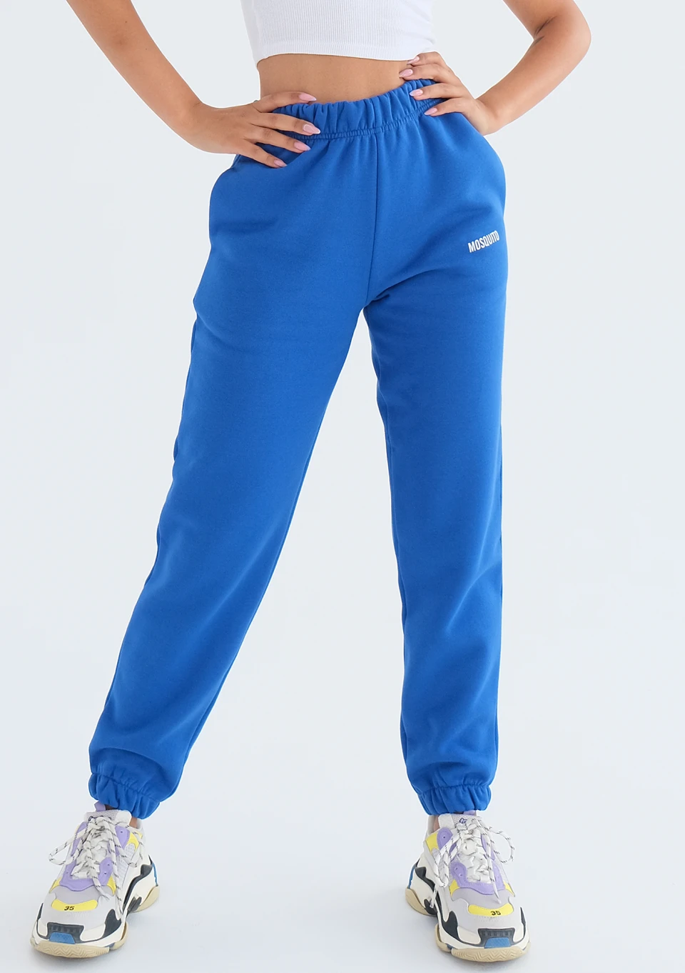 Wygodne spodnie dresowe w pięknym kolorze kobaltowym. Wykonane w polskiej szwalni z miękkiej i certyfikowanej dzianiny.