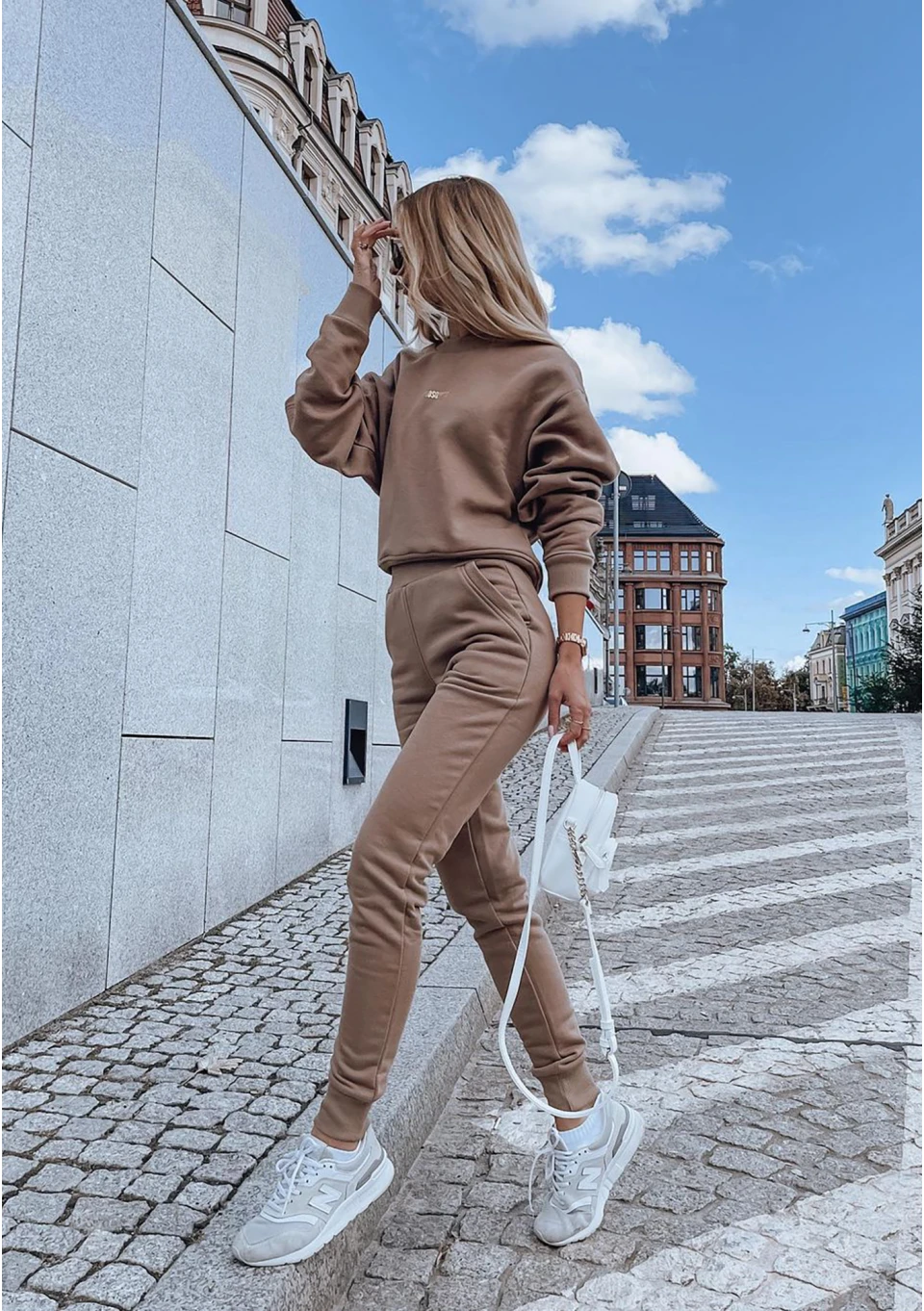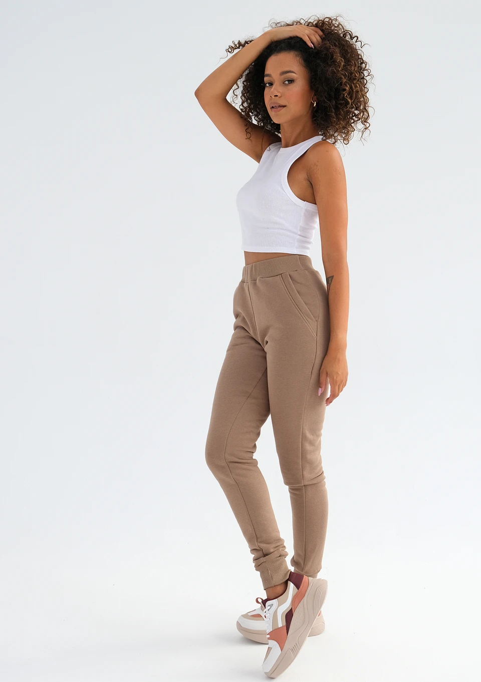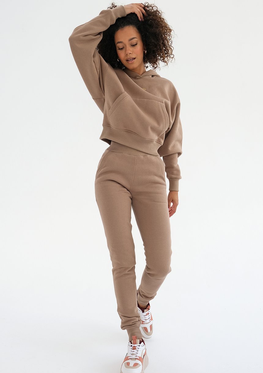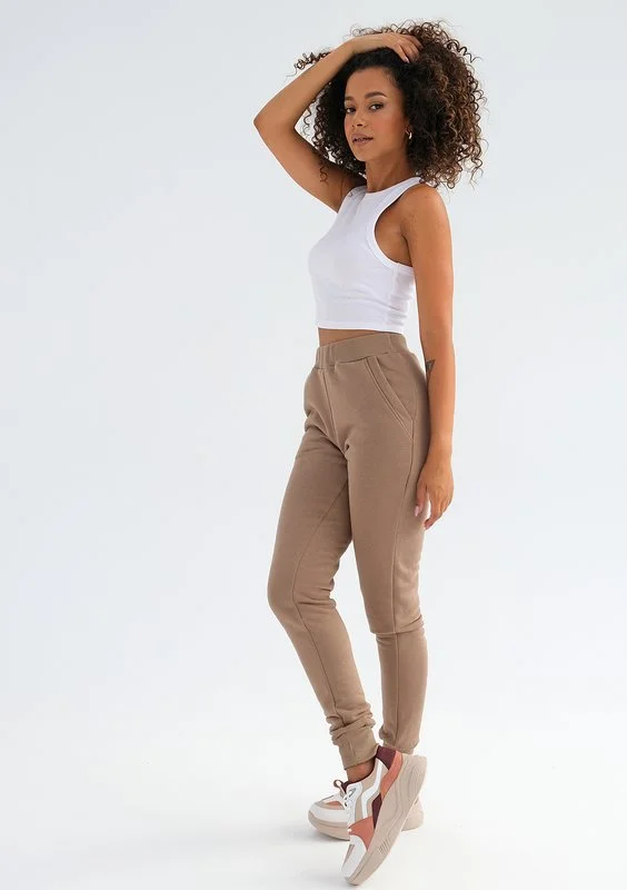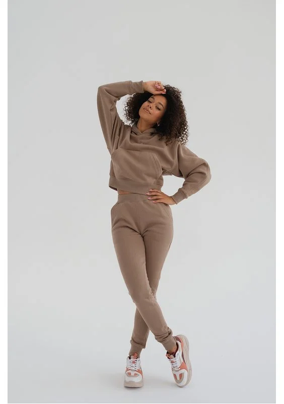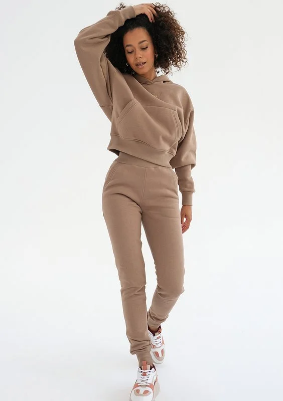 Jesienią i zimą wygodny dres w pięknym kolorze to niezastąpiona stylizacja ) Prezentowany model to spodnie we wszechstronnym odcieniu kawy, wykonane z przyjemnie miękkiej dzianiny. Delikatnie podkreślają sylwetkę, a przy tym zachowują sportowy styl i komfortowy luz. Połącz je z bluzą, by mieć gotowy zestaw na szybkie wyjście.