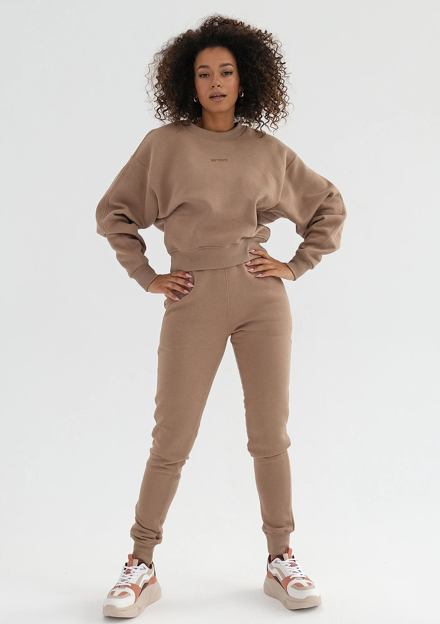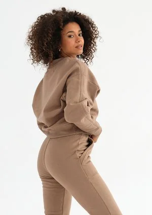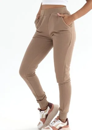 Dresy z linii Venice delikatnie przylegają do ciała, a dodatkowo dość szeroki ściągacz w pasie pozwala zaakcentować talię, co sprzyja uwypukleniu atutów sylwetki. Krój jest lekko luźny, z dwoma wykończonymi w estetyczny sposób kieszeniami, a kolorystyka nadaje produktowi uniwersalnego charakteru. Spodnie damskie o odcieniu kawy z mlekiem mogą stanowić podstawę wielu stylizacji. W komplecie z bluzą stworzą swobodny, sportowy look, natomiast akcesoria w postaci wyrazistej biżuterii i gustownej torebki nadadzą całości bardziej elegancką formę.
