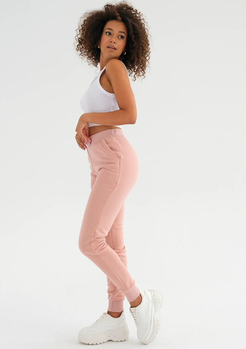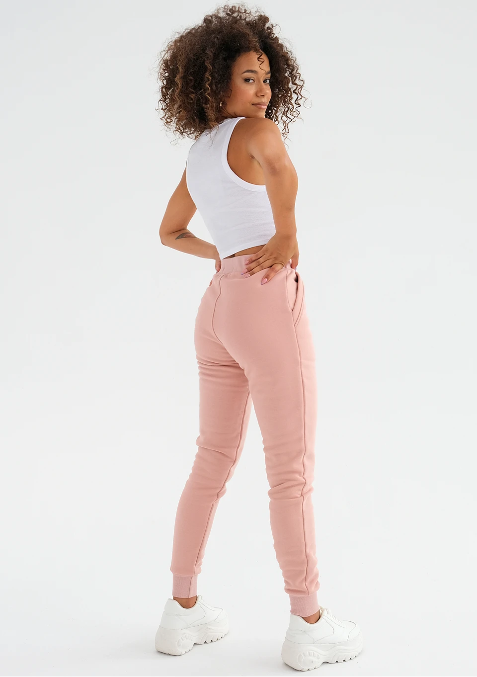 Venice to fason, który delikatnie podkreśla sylwetkę, a przy tym zachowuje sportowy styl i odrobinę wygodnego luzu. To model w pudrowym różu, idealny na wiele niezobowiązujących okazji, aktywności i do wypoczynku.