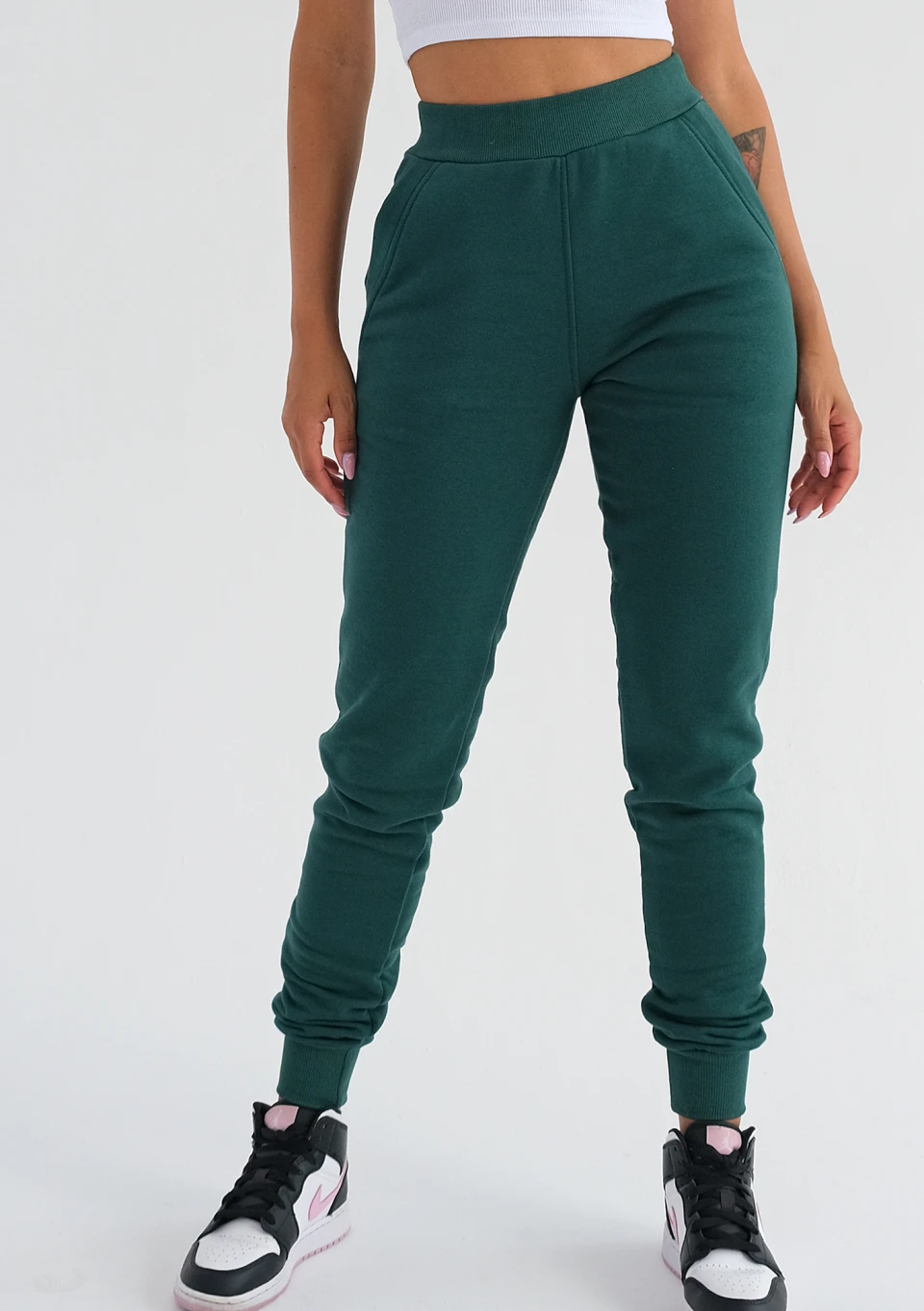Spodnie dresowe o tym fasonie świetnie podkreślą Twoją sylwetkę. Wykonane są z miękkiej dzianiny w ciemnozielonym kolorze.
