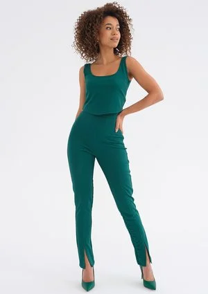 Cygaretki to elegancki krój spodni damskich, które cieszą się bardzo stabilną pozycją w trendach. Są ponadczasowe, idealnie sprawdzają się w sytuacjach, w których obowiązuje szykowny dress code, na przykład do biura czy spotkanie zawodowe. Zielone spodnie projektu Alicji Komar posiadają ozdobne rozcięcia na dole nogawek, które świetnie współgrają z butami na obcasie, które do nich założysz: botkami, jak i klasycznymi szpilkami. Dopasowana forma estetycznie i wygodnie przylega do bioder, spodnie są z wysokim stanem i zapinane drobnym zamkiem. Fason dostępny w czterech rozmiarach XS – L kupisz również w innych kolorach.