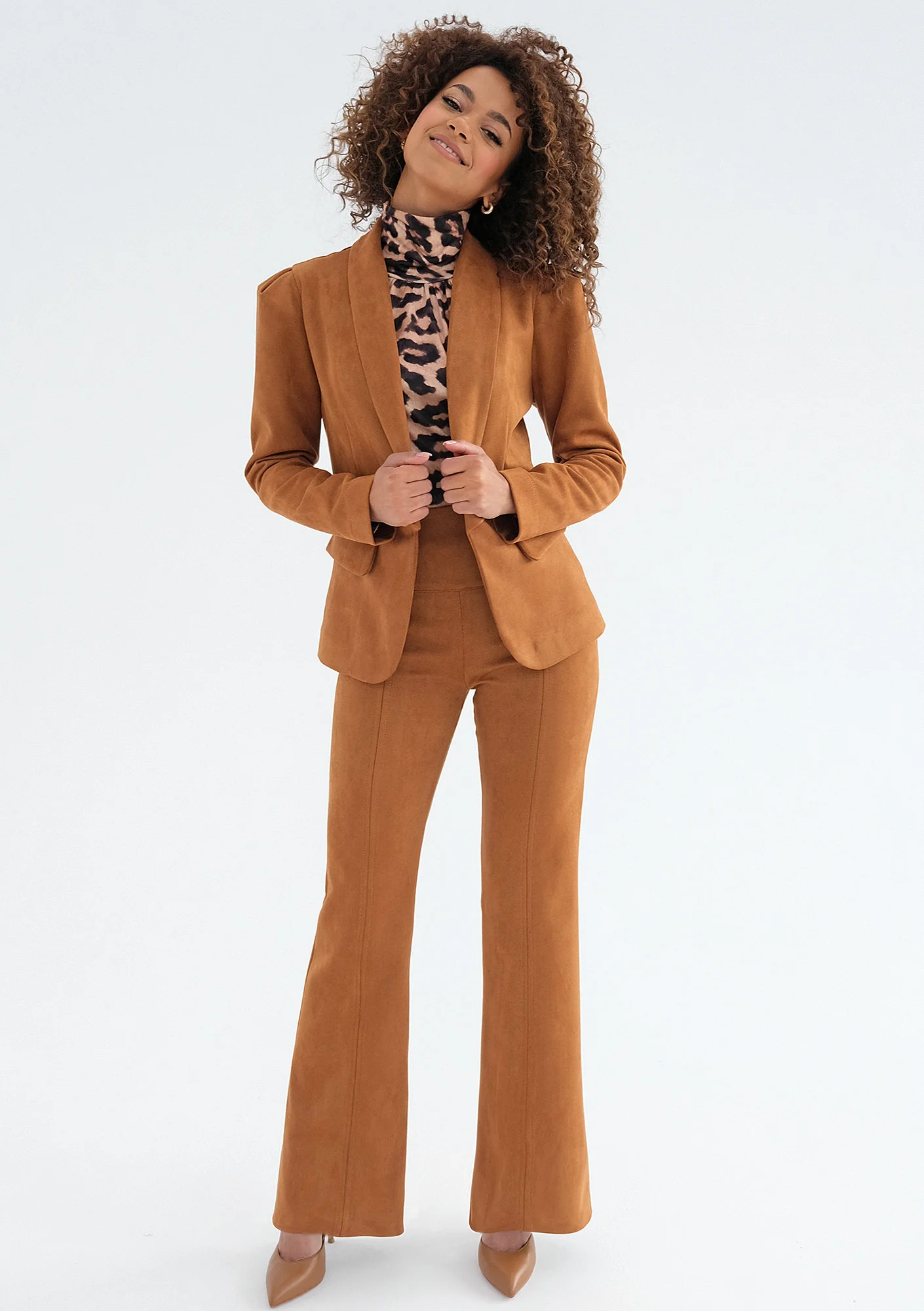 Trevi - Spodnie z imitacji zamszu Karmelowe