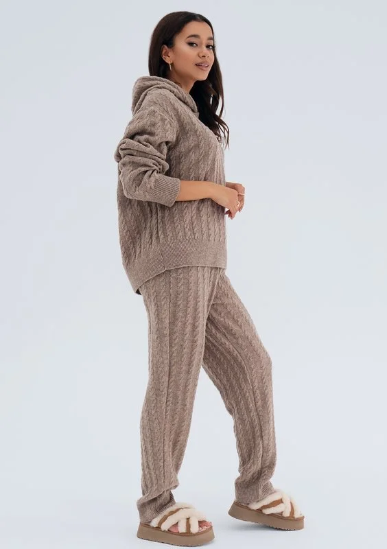 Milu - Szerokie spodnie z warkoczowym splotem Brown
