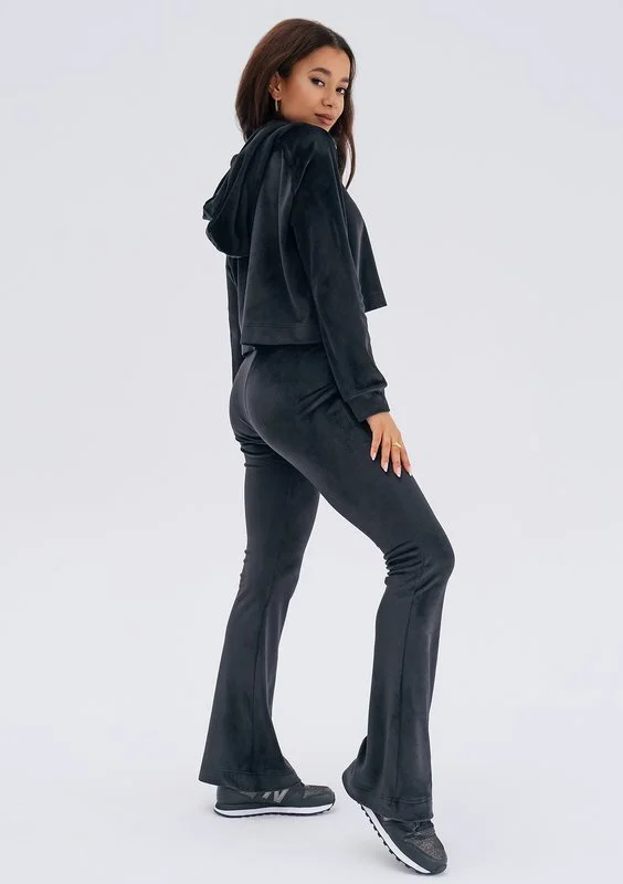 Modne spodnie z szeroką nogawką. Wykonane z przyjemnie miękkiego, aksamitnego materiału.