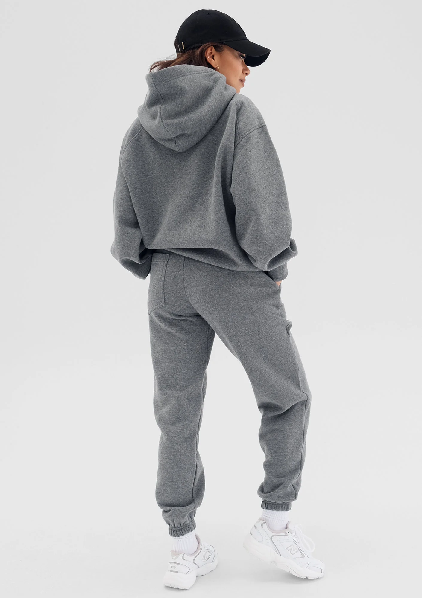 Uniwersalne, a jednak z wyjątkowym designem – szare spodnie dresowe z naszej najnowszej kolekcji to model, który będzie w stałym użytku. Są wygodne, przyjemnie luźne i otulające. Idealne do wypoczynku, jak i na szybkie wyjście. Zostały uszyte z miękkiej dzianiny bawełnianej o certyfikowanych włóknach. Drobny dodatek poliestru wpływa na miękkość i gęstość materiału. Od spodu faktura przyjmuje postać miękkiego meszku, który w nieco większym stopniu zachowuje ciepło, aniżeli dresówka pętelka, z której szyjemy nasze dresy damskie na wiosnę i lato.