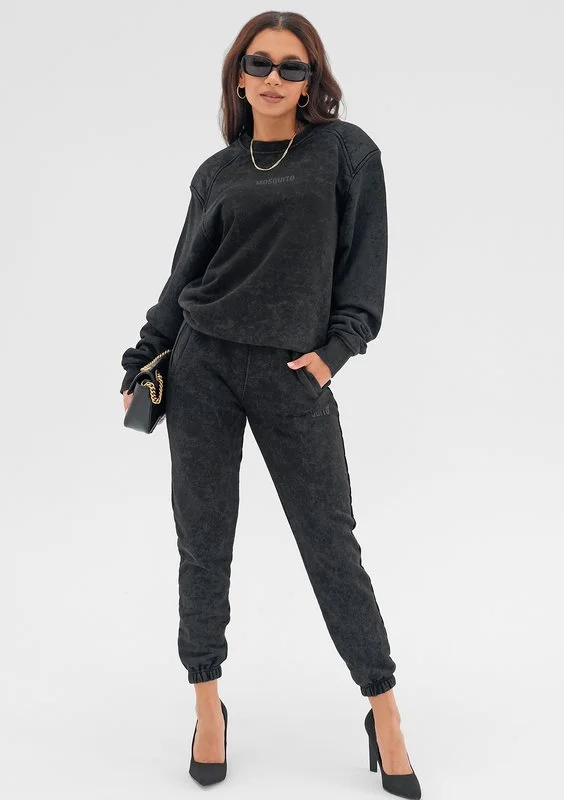 Dresy damskie z efektem sprania to stylowy hit na chłodne dni zimy i wczesną wiosnę. Wygodne, czarne spodnie zostały wykonane w polskiej szwalni.