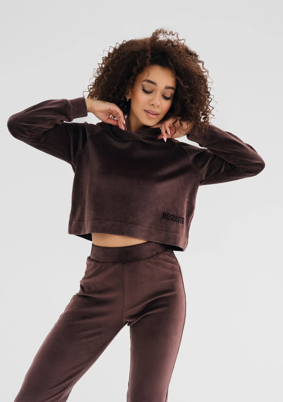 Brązowe spodnie dresowe z modną, szeroką nogawką. Wykonane z przyjemnie miękkiego, aksamitnego materiału.