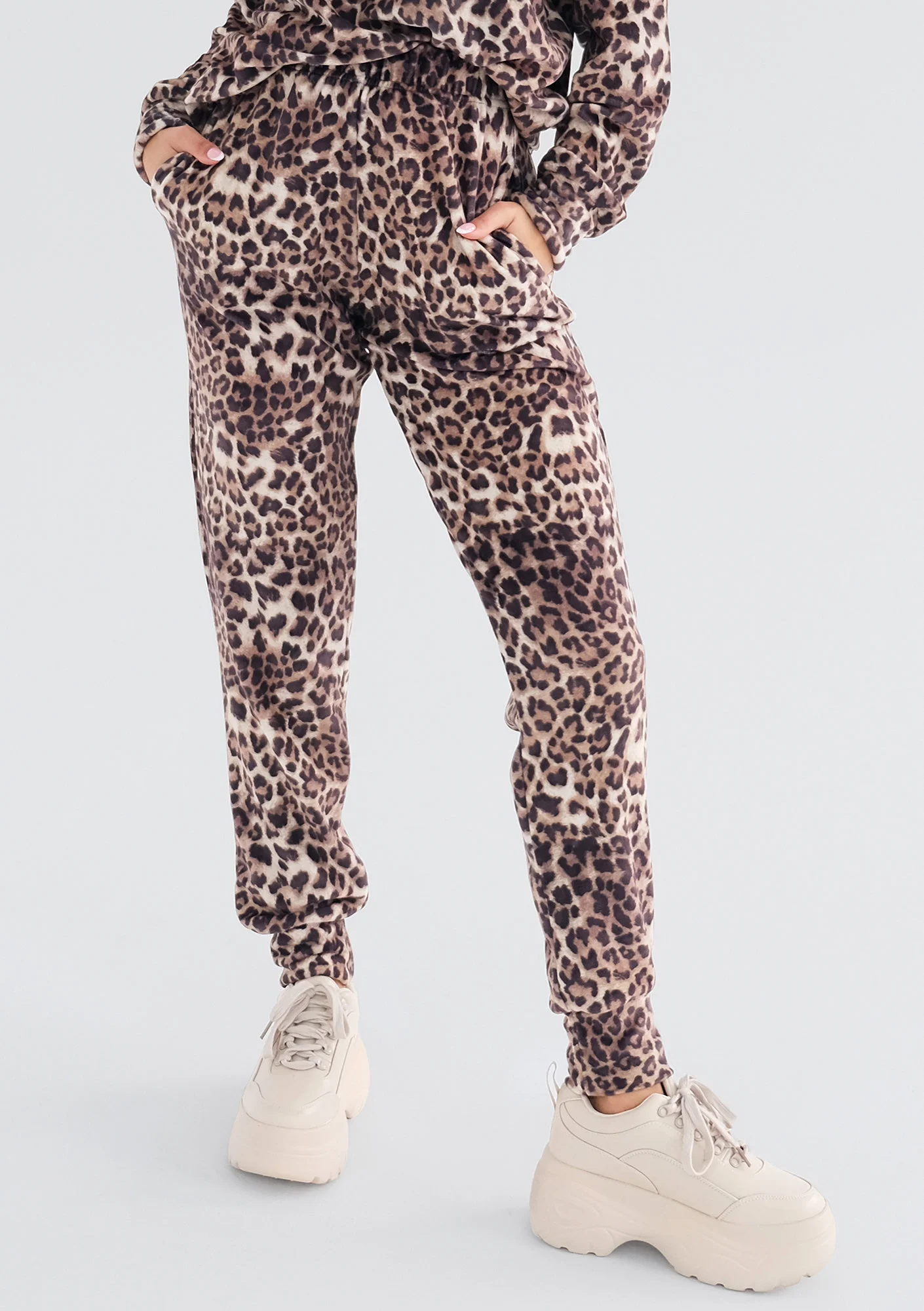 Zuno - Spodnie velvet dresowe w cętki
