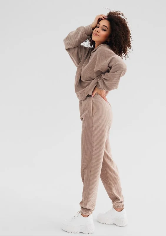 Jogg - Spodnie welurowe w prążki Beżowe