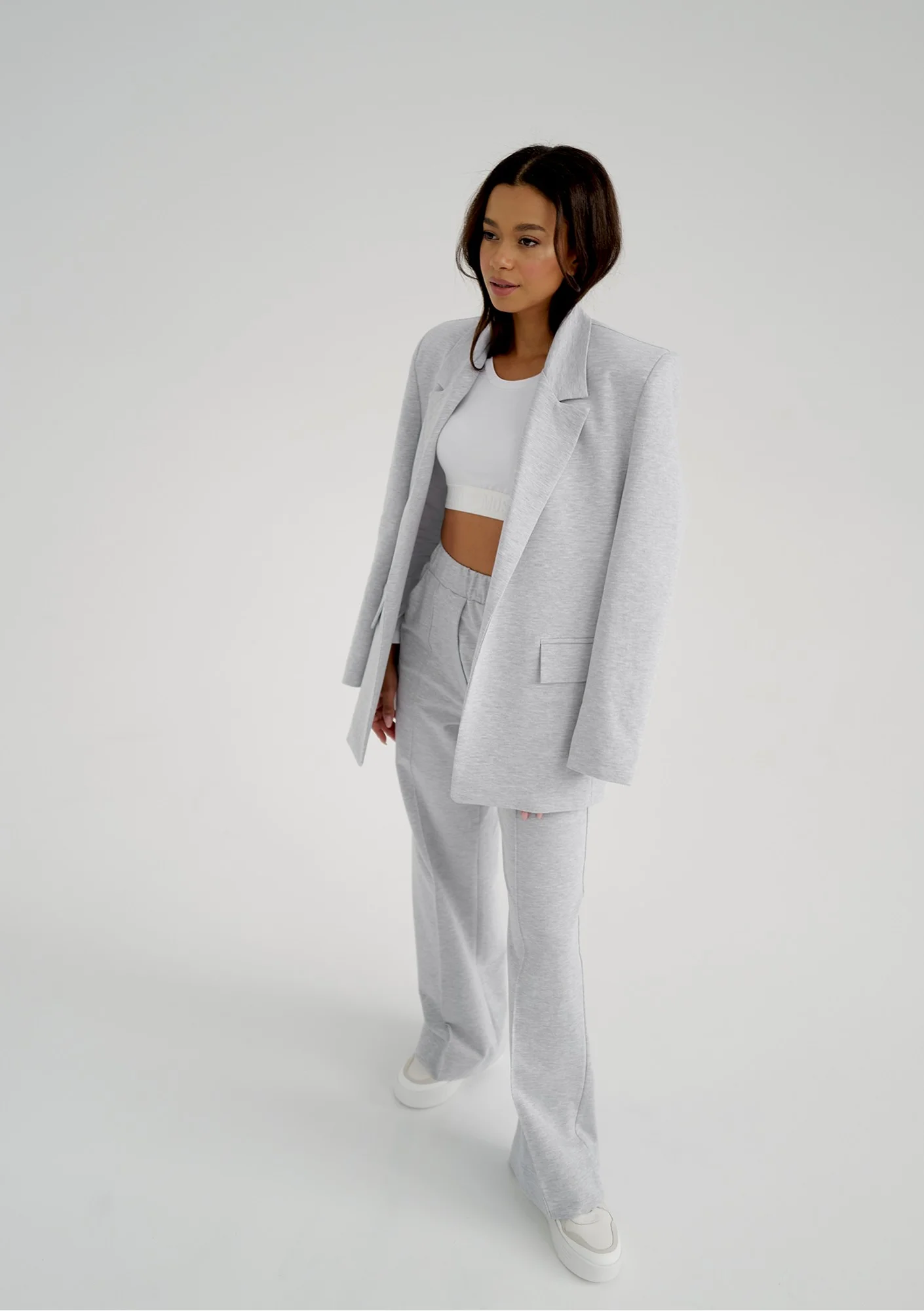 Tej wiosny zakochaj się w wygodnych spodniach z kantami. Ich szerokie nogawki są aktualnie najmodniejsze! Ellis to uniwersalny fason, który proponujemy w różnych kolorach. Oto najbardziej uniwersalne, szare spodnie z nienachalnym, melanżowym deseniem. Połączysz je z naszą marynarką z modelu Zura lub dowolnym T-shirtem czy elegancką koszulą.