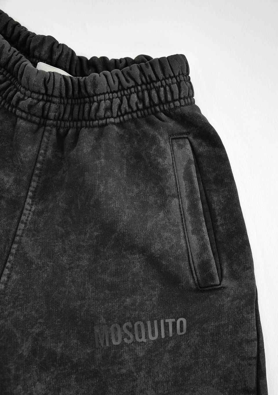 Wygodne, czarne spodnie dresowe wykonane w polskiej szwalni. Model z modnym efektem sprania, z dzianiny z miękkim meszkiem od spodu.