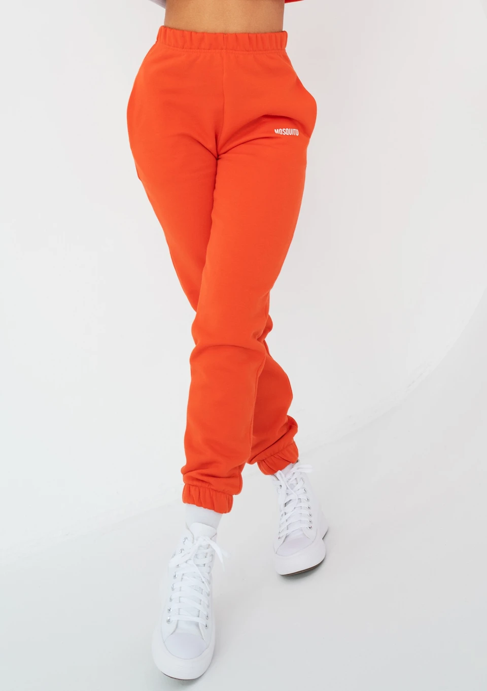 Pomarańczowe spodnie dresowe z kieszeniami. Wykonane z dzianiny bawełnianej z miękkim meszkiem od spodu.