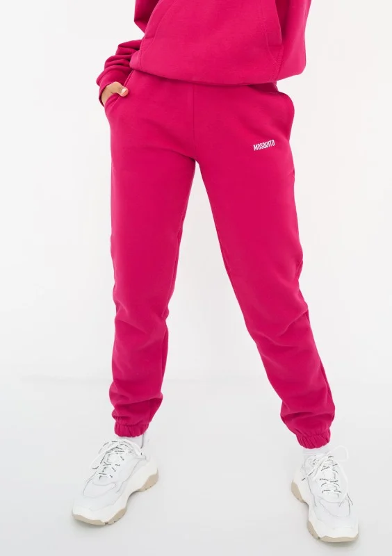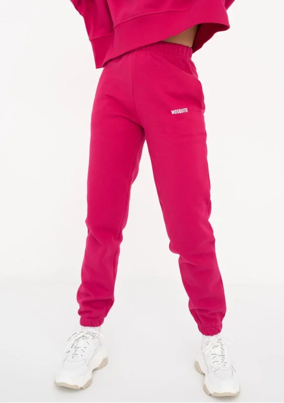 Wygodne spodnie dresowe z kieszeniami w najmodniejszym odcieniu magenta. Wykonane z dzianiny bawełnianej z miękkim meszkiem od spodu.