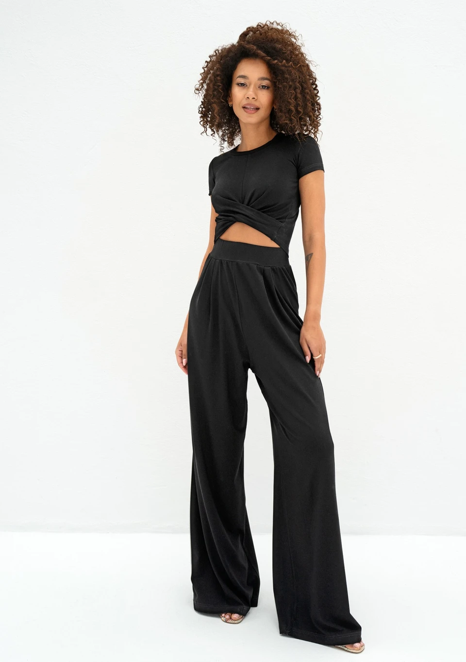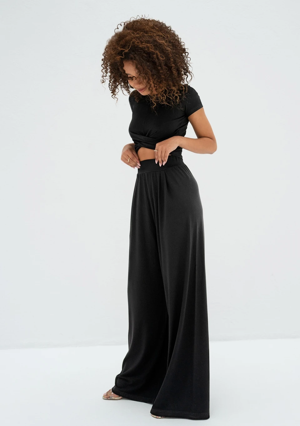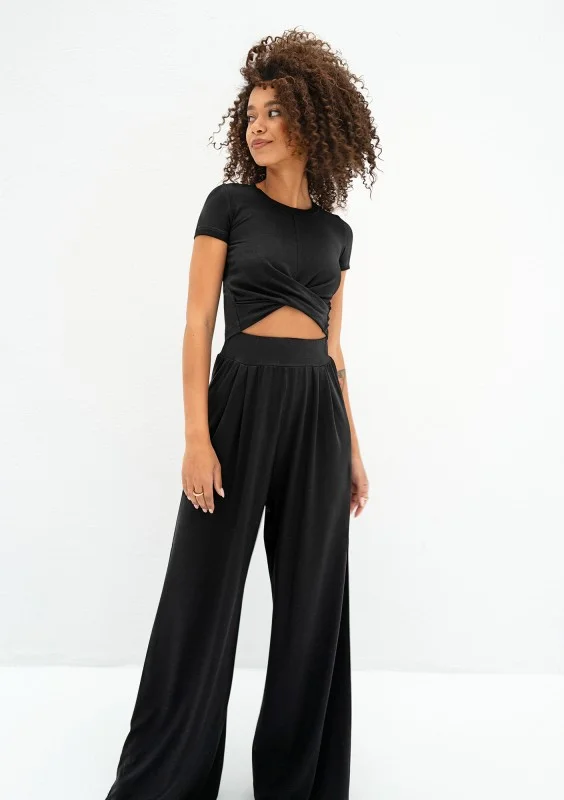 Stylizacja z wiskozy to obowiązkowa pozycja na letnie upały. Zwiewne, czarne spodnie na gumce sprawią, że poczujesz się lekko i wygodnie.