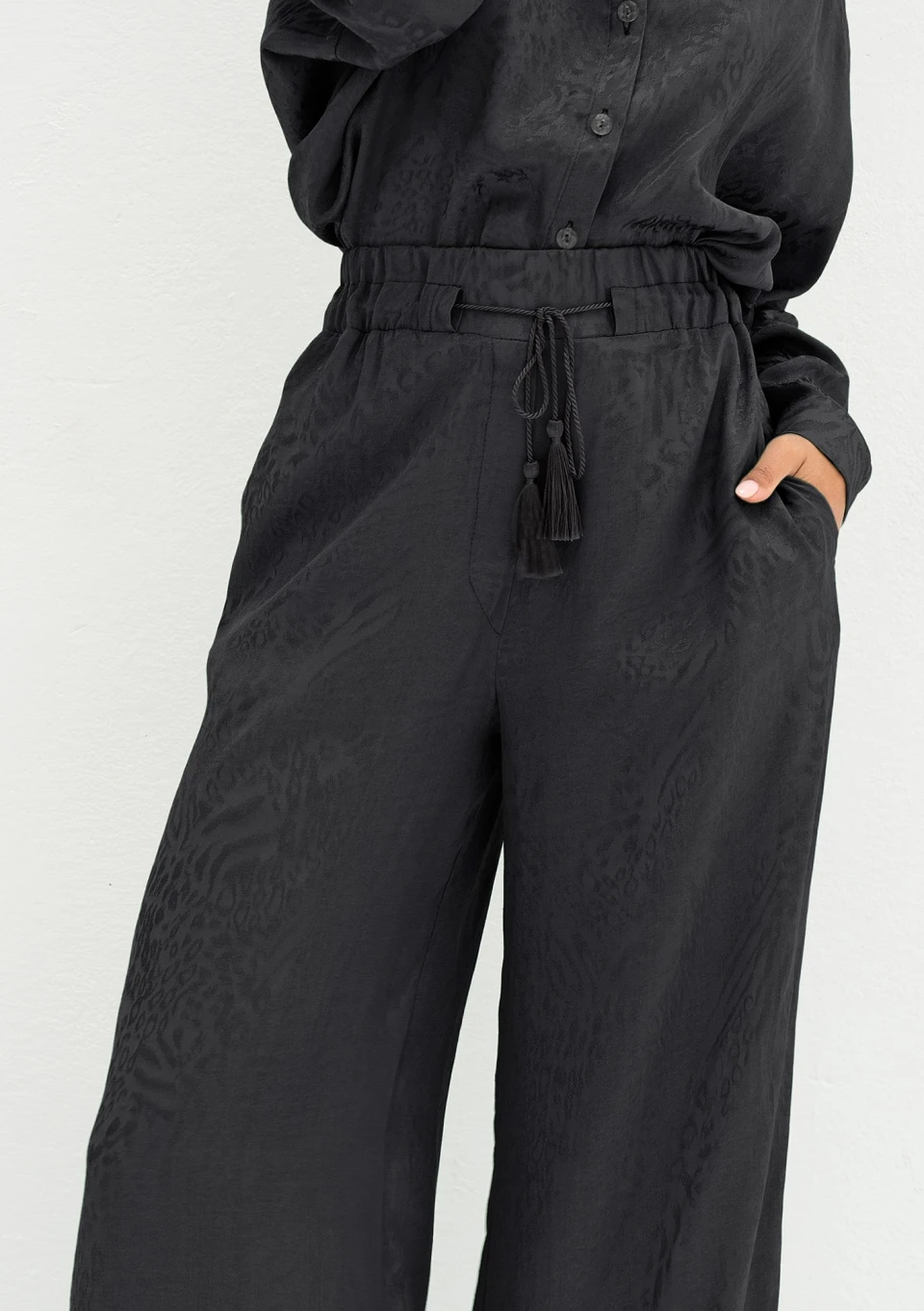 Cancun - Spodnie z żakardowej wiskozy Czarne