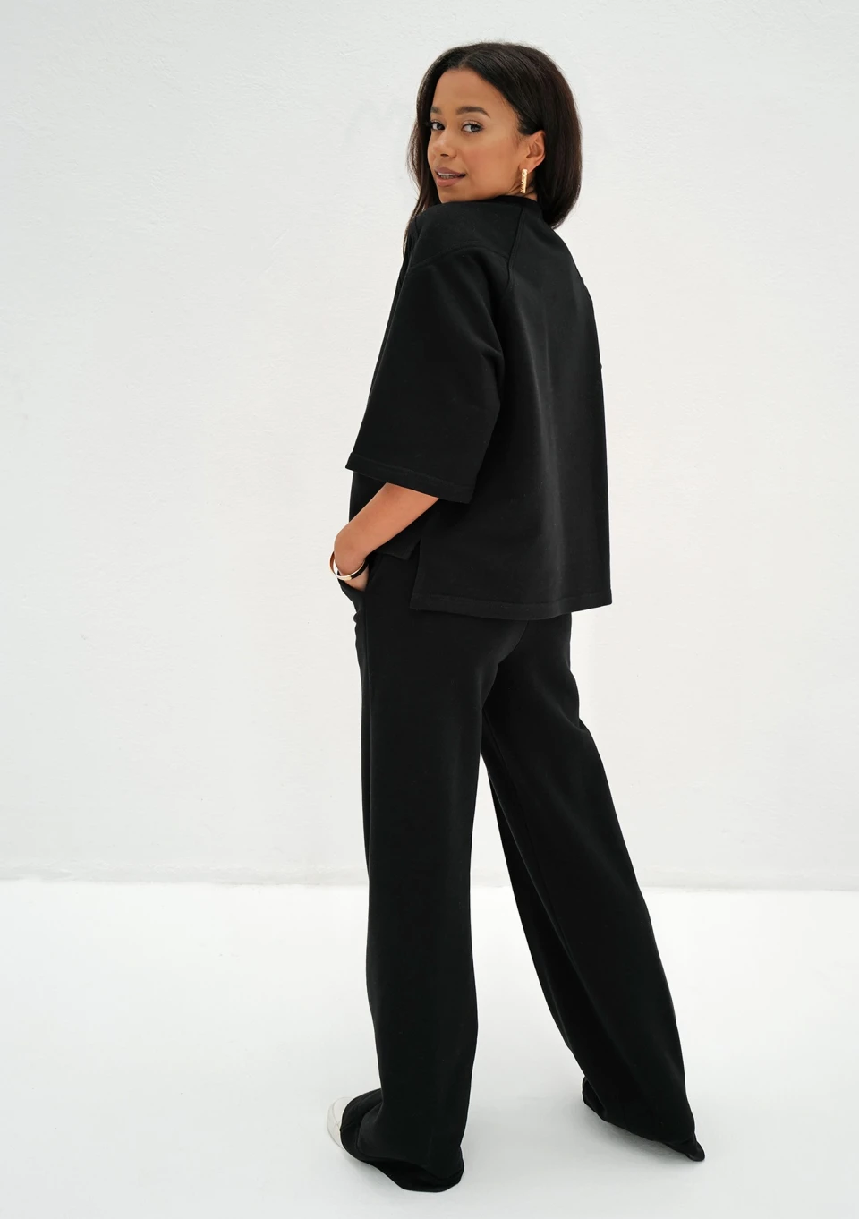 Melgo - Spodnie dzianinowe z kantem Czarne