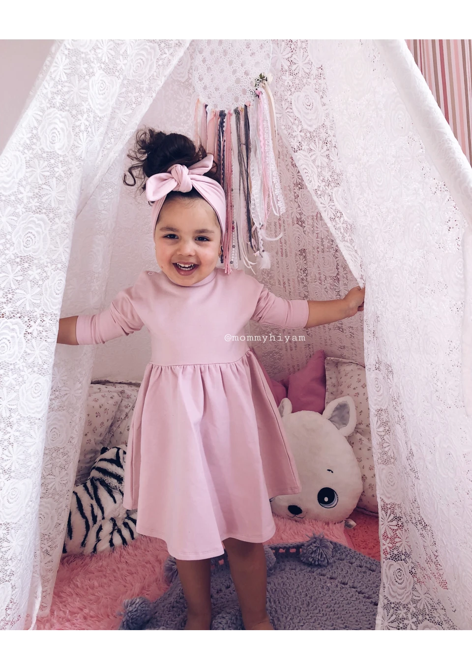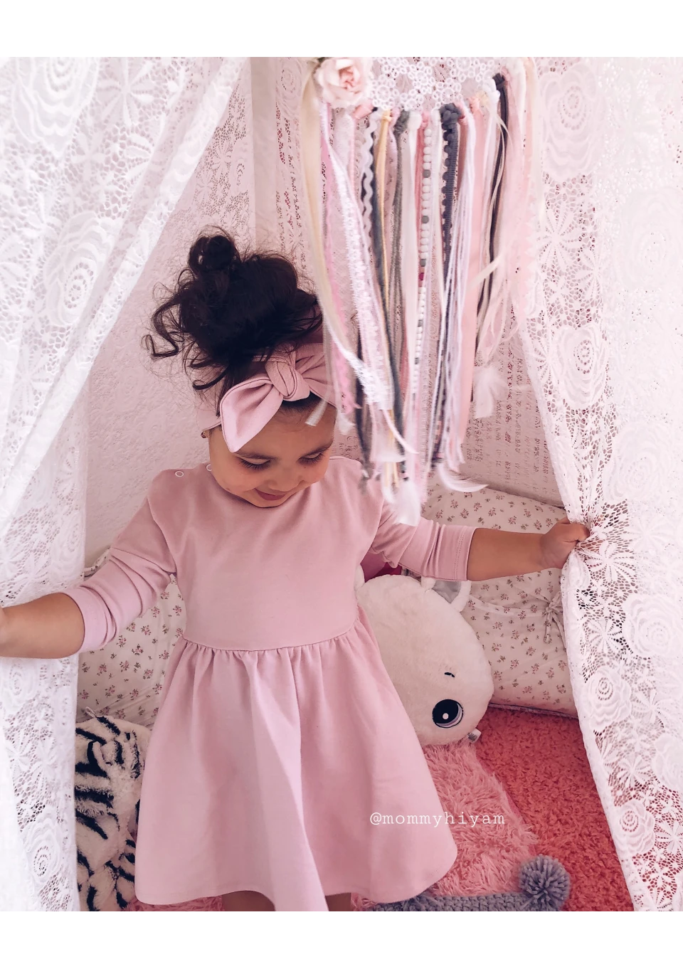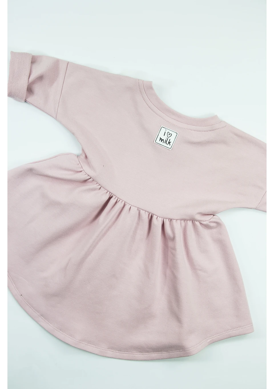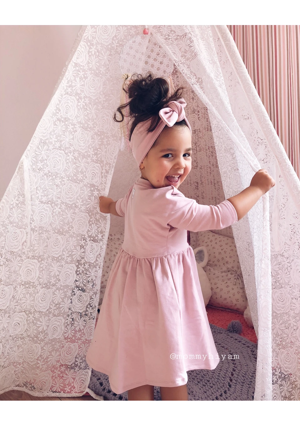 Różowa sukienka dla dziewczynki z naturalnego, elastycznego materiału. Uszyta z bawełny, delikatna dla dziecięcej skóry.