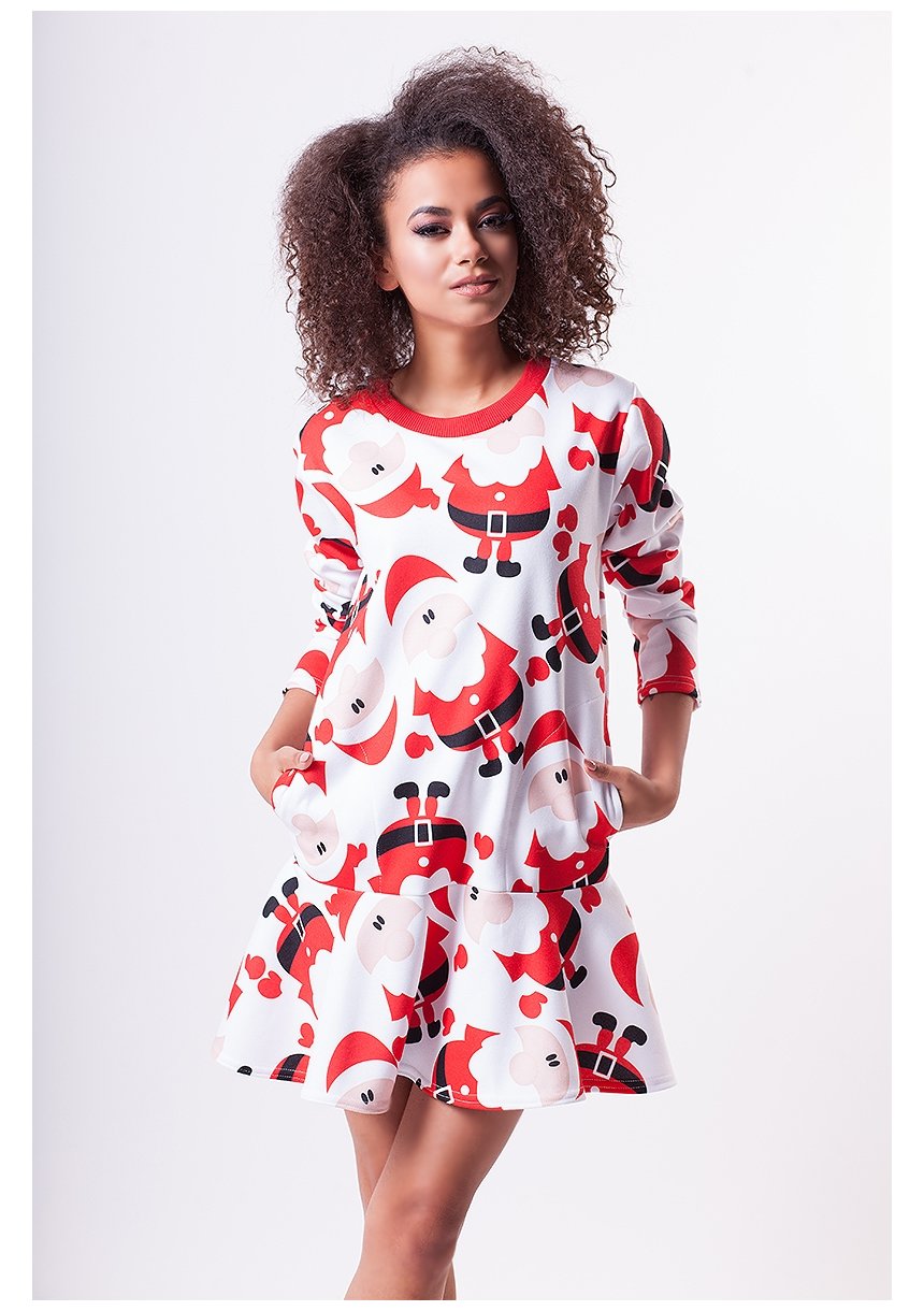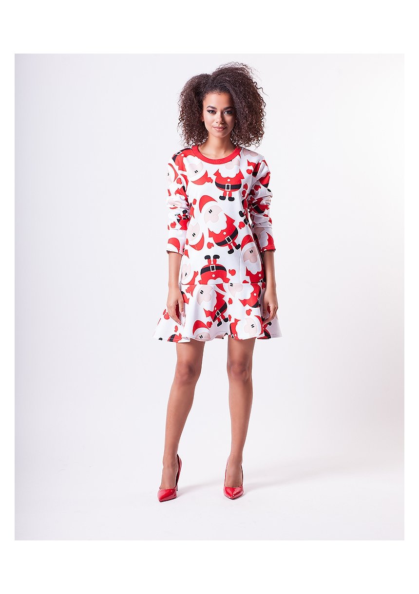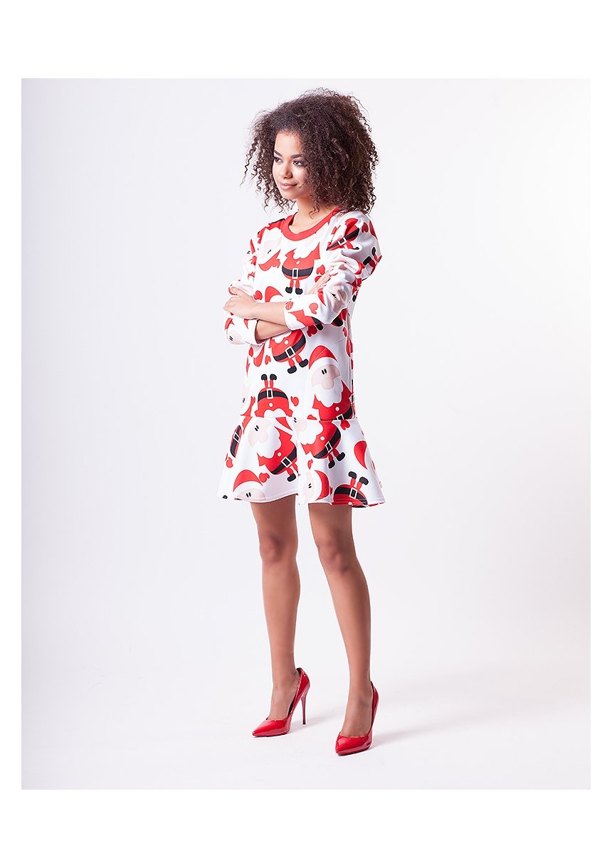 Greta - Koktajlowa sukienka midi z kwiatowym dekoltem Ecru