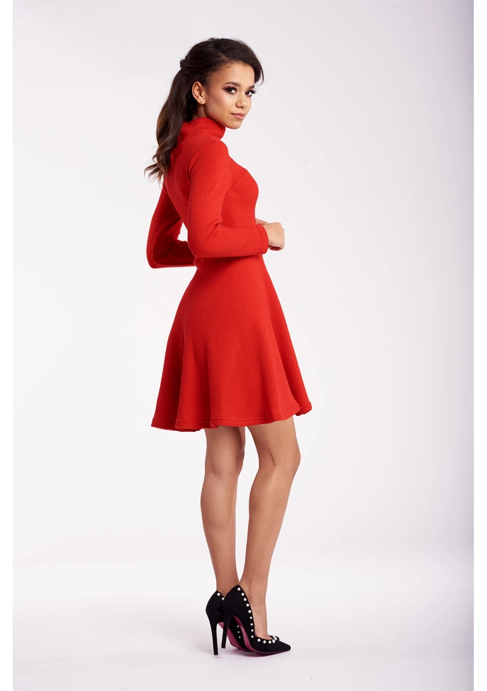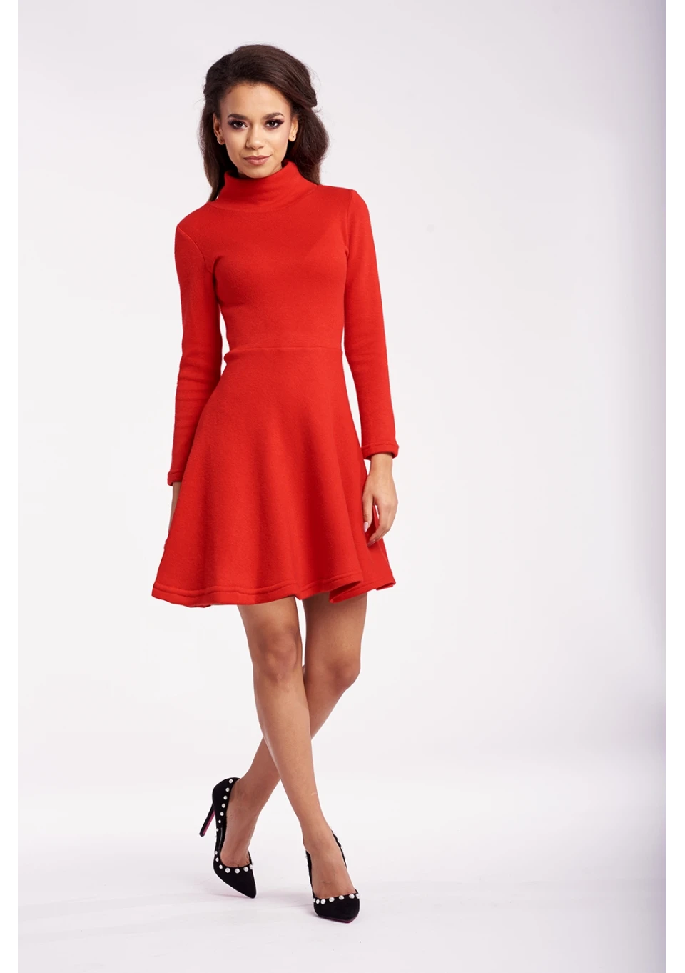 ROZKLOSZOWANA SUKIENKA ZE SWETERKOWEJ DZIANINY