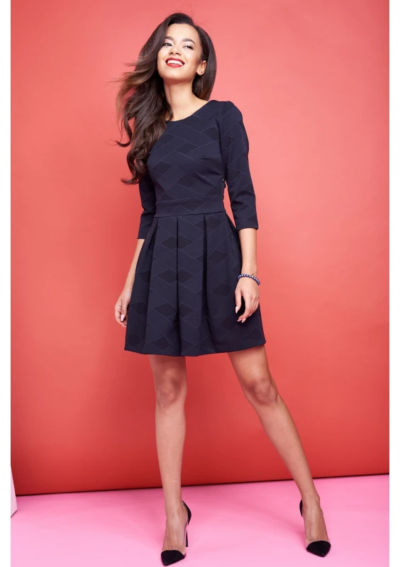 Greta - Koktajlowa sukienka midi z kwiatowym dekoltem Granatowa
