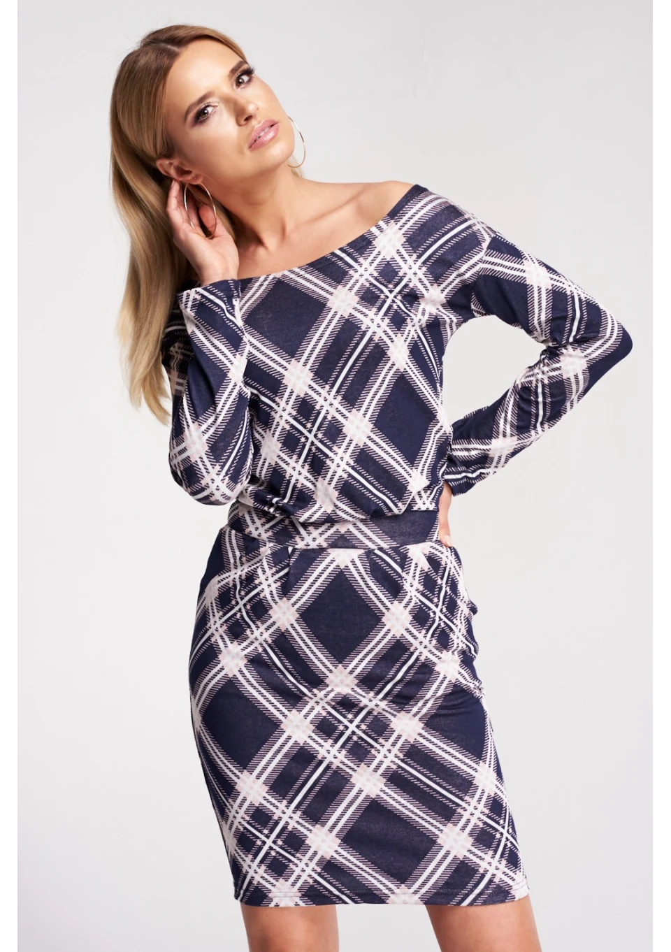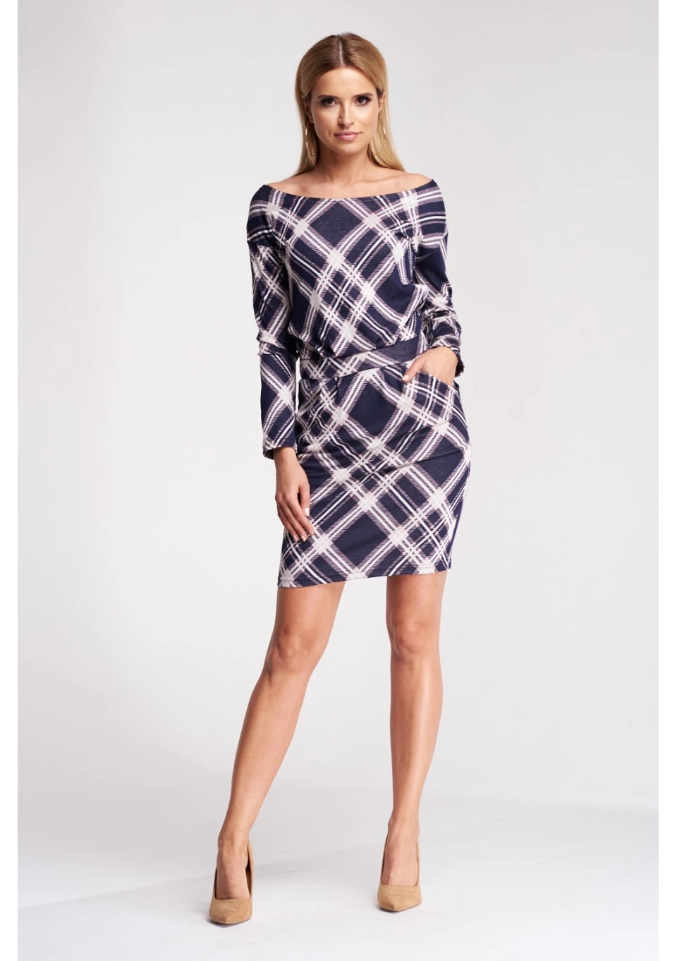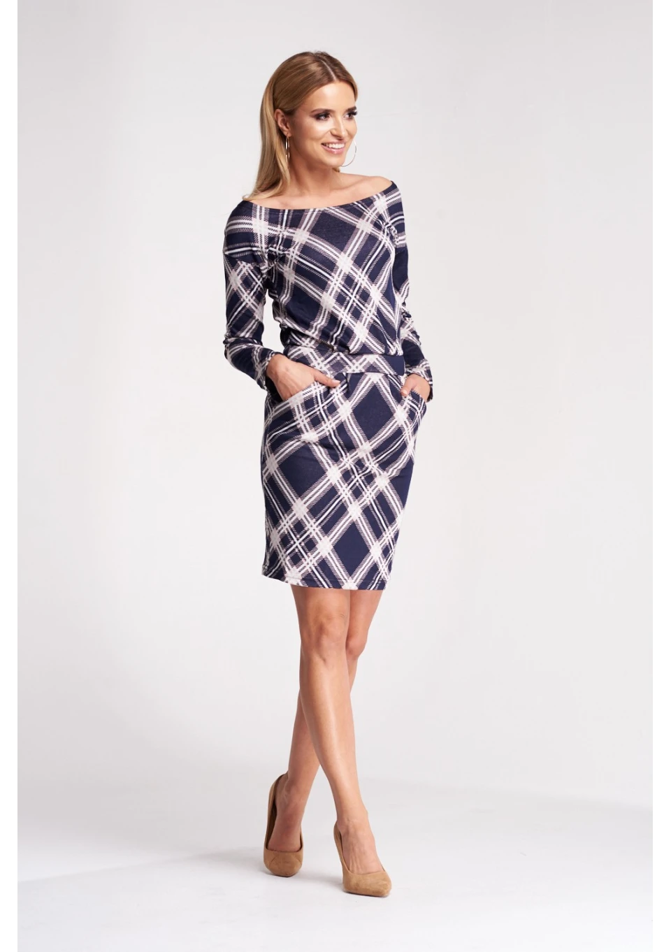 OŁÓWKOWA SUKIENKA W KRATKĘ NAVY