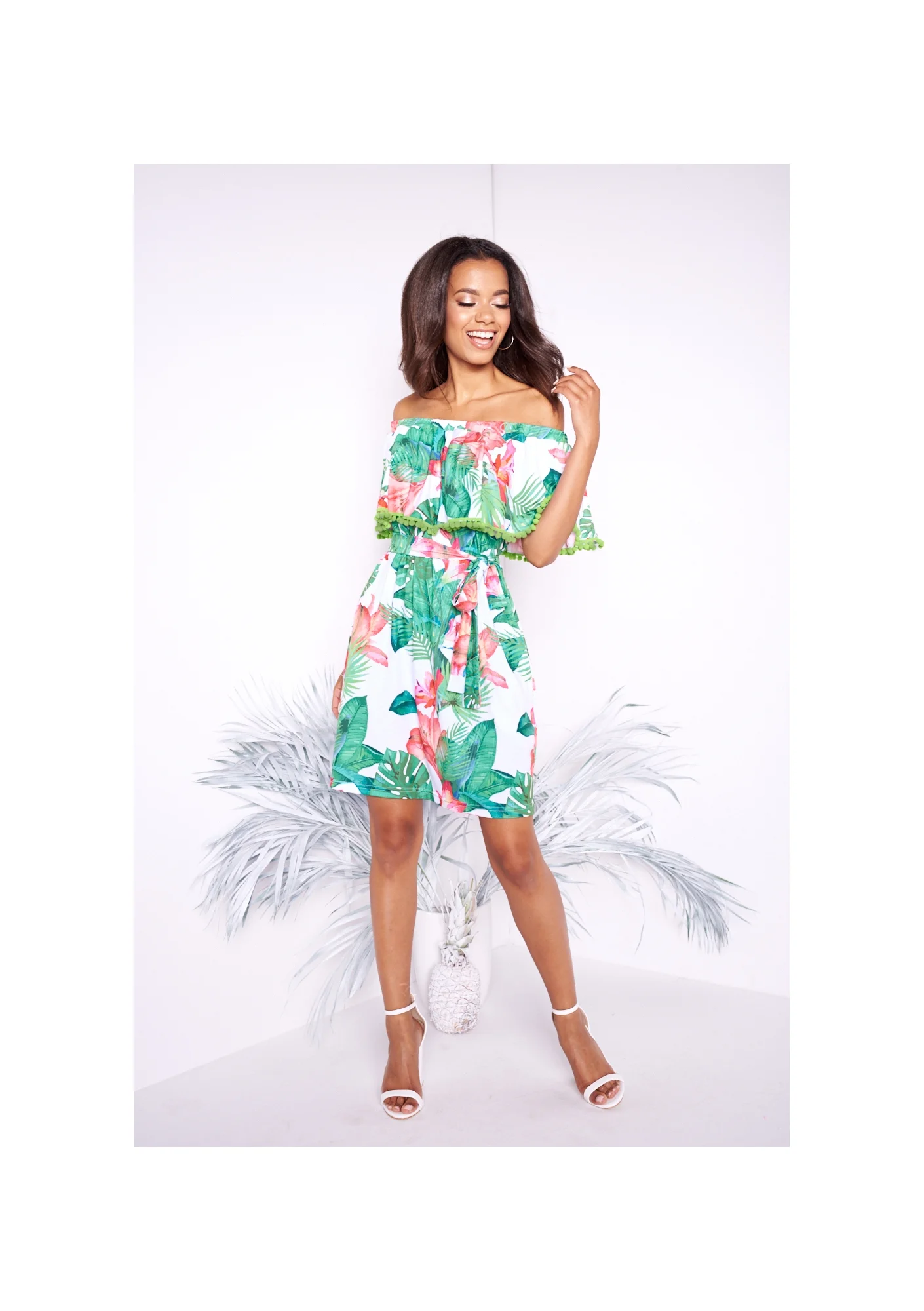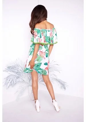 TRAPEZOWA SUKIENKA Z POMPONIKAMI GREEN