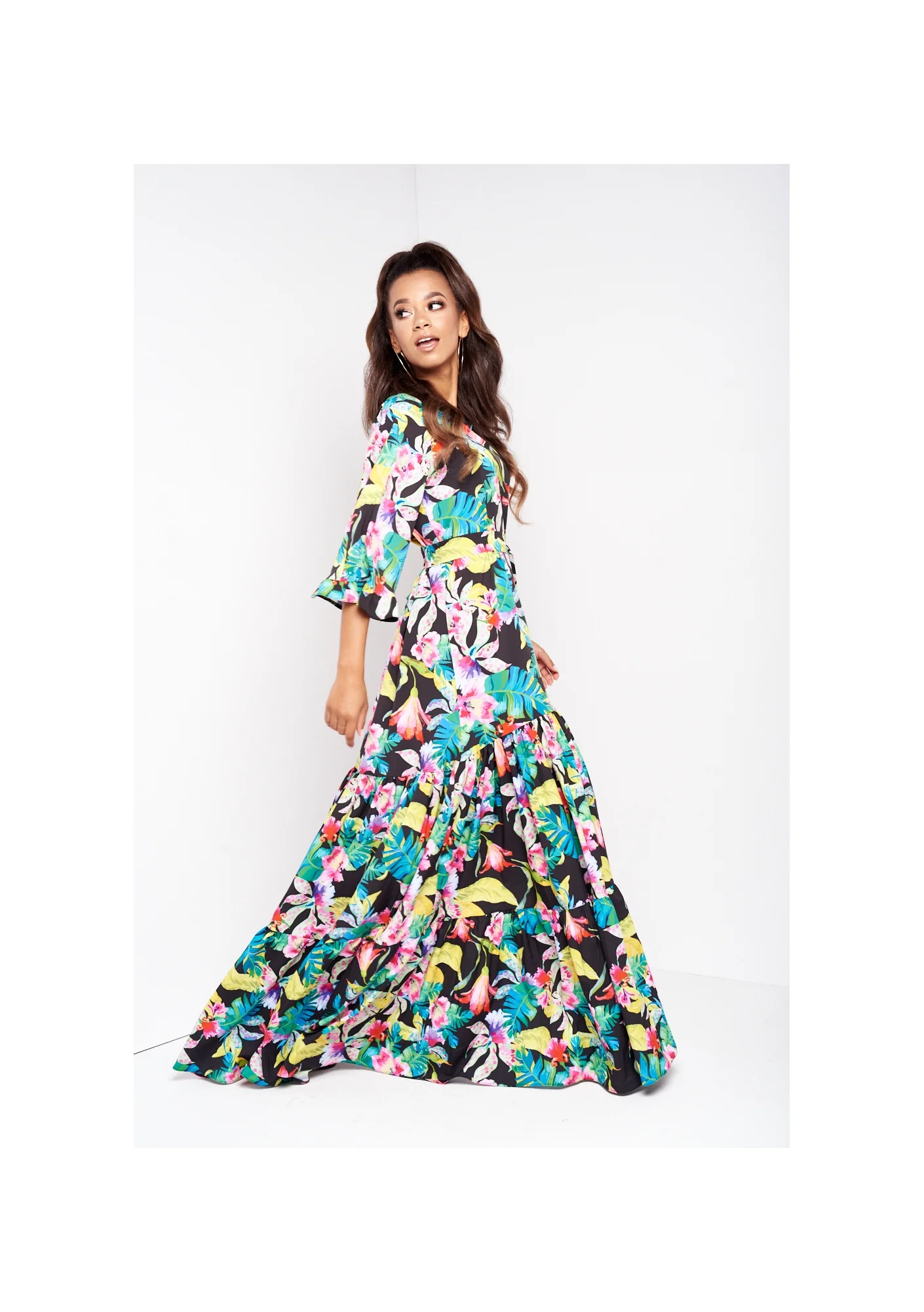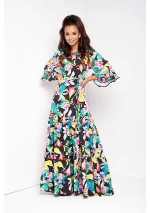 SUKIENKA MAXI Z PASKIEM BLACK EXOTIC FLOWER