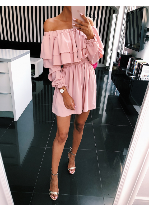 SUKIENKA ODKRYTE RAMIONA Z FALBANAMI