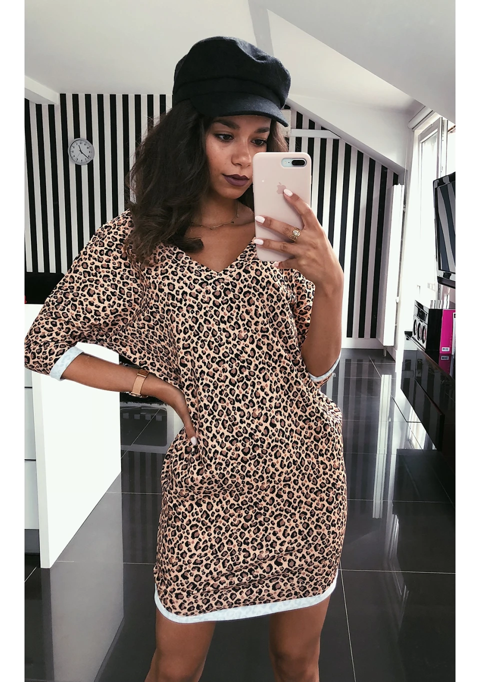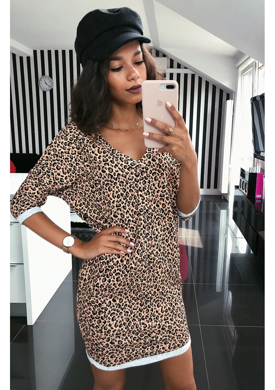 Everyday Dress - T-shirtowa sukienka z taliowaniem w Paski