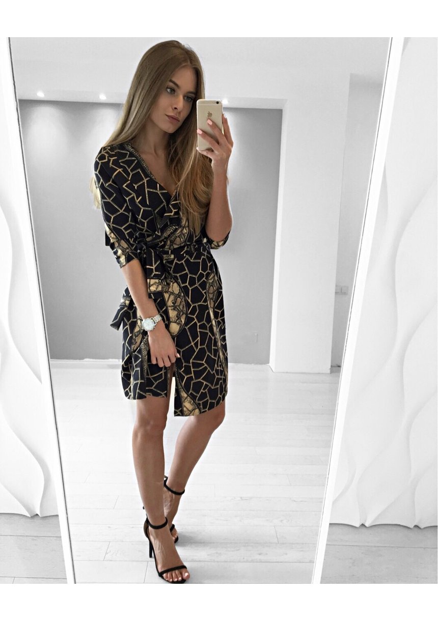 KOPERTOWA SUKIENKA Z WIĄZANIEM PRINT