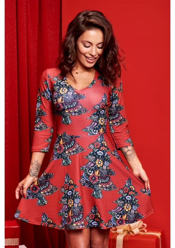 Mirelle - Sukienka midi z kołnierzykiem i dekoltem ,,V" Zielona