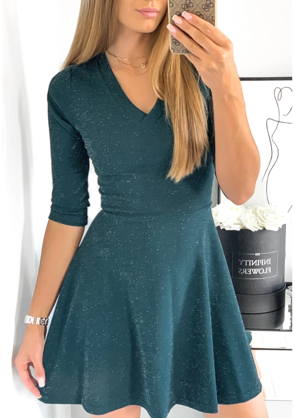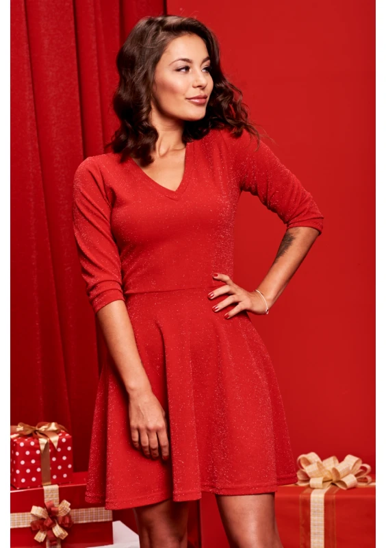 Keyline - Dopasowana sukienka z efektownym wycięciem na dekolcie Brązowa