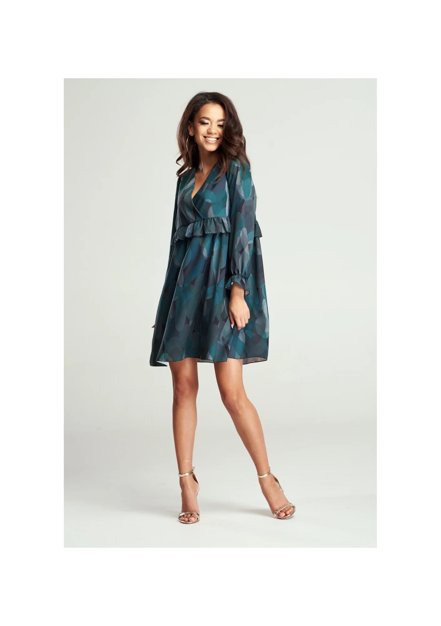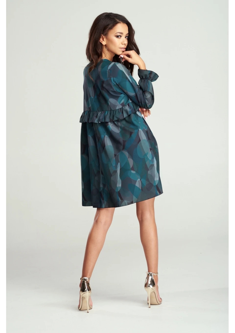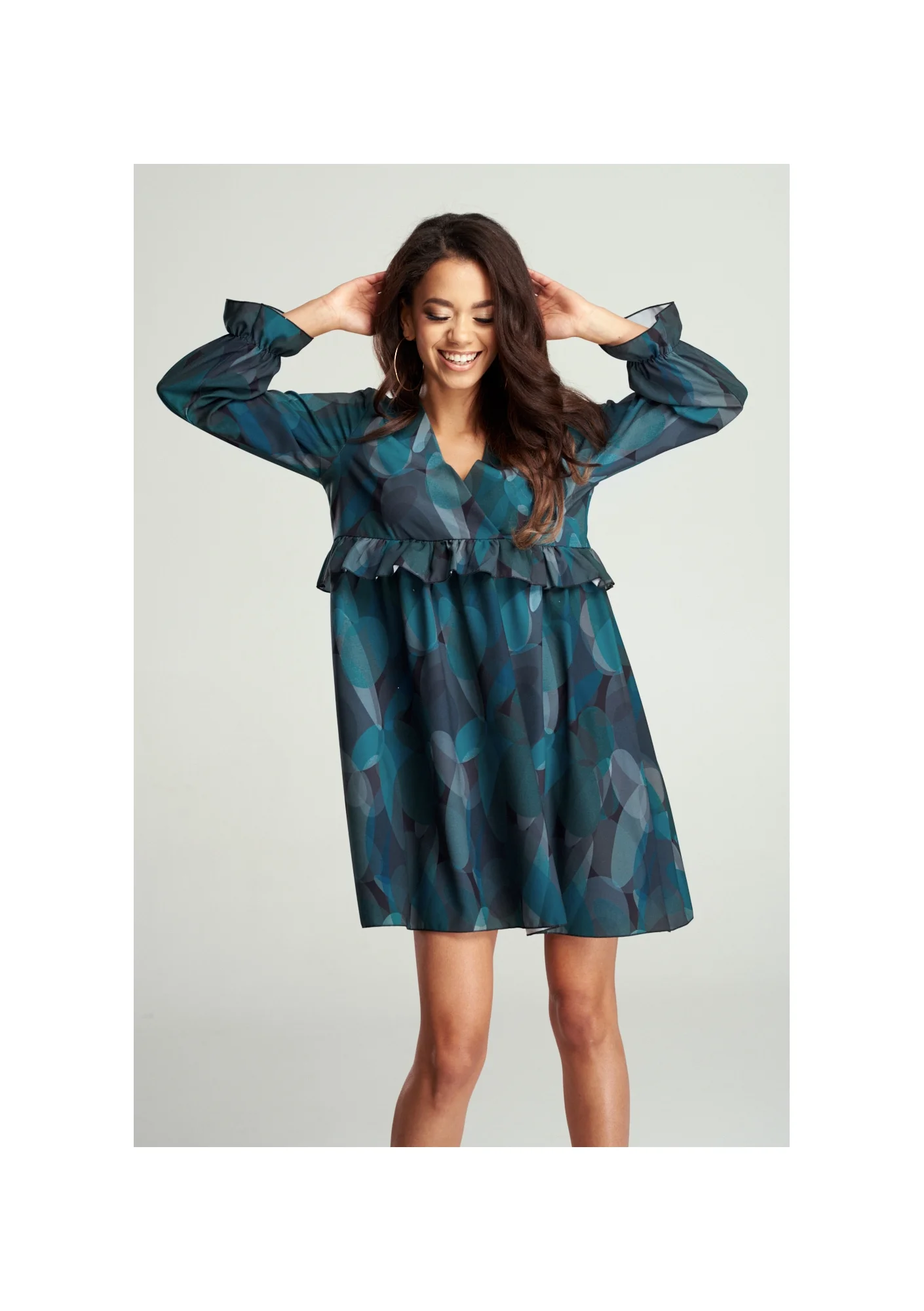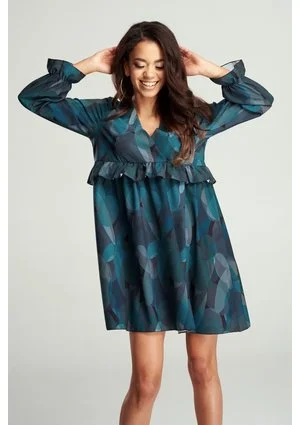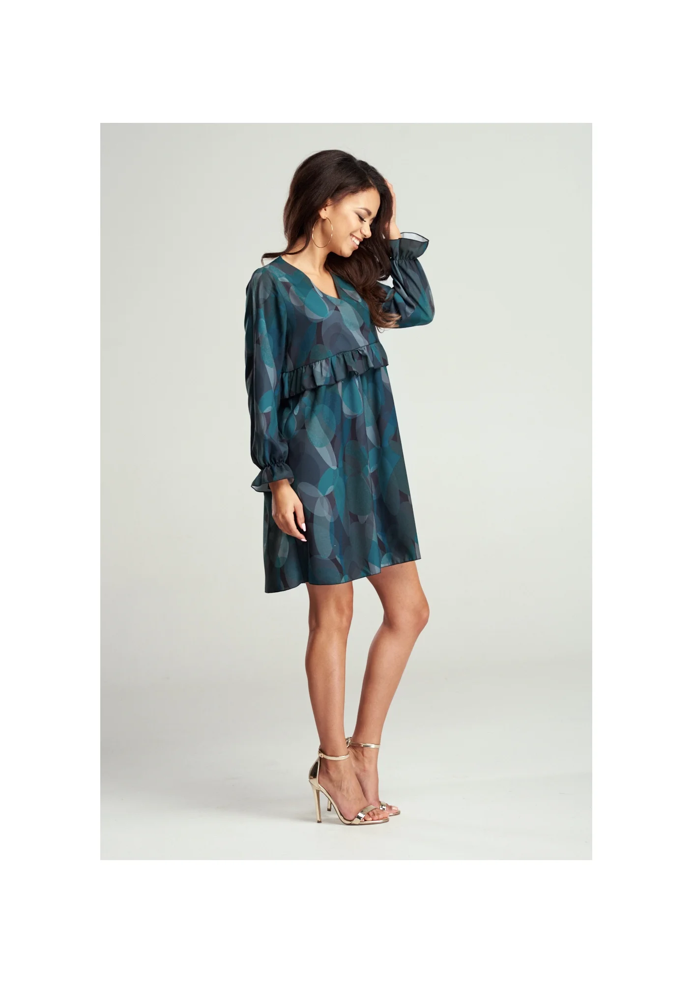 TRAPEZOWA SUKIENKA Z FALBANKĄ PRINT