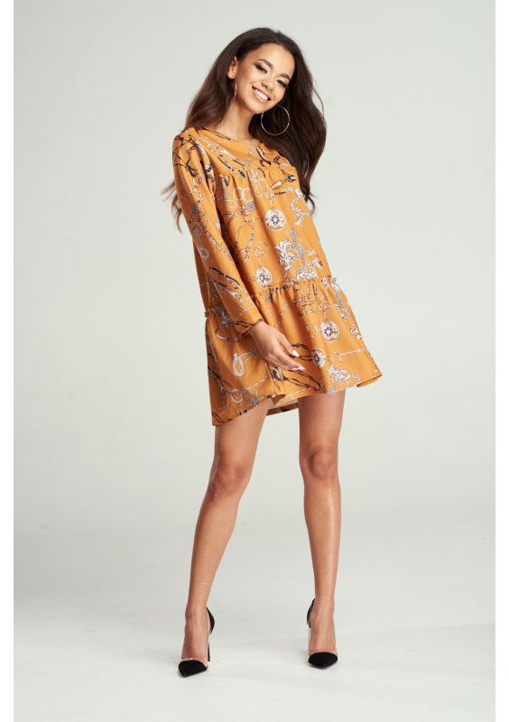 SUKIENKA Z MARSZCZENIAMI MISTED YELLOW PRINT