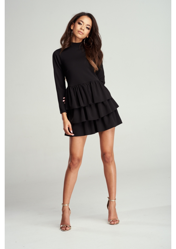 Kelly - Rozkloszowana sukienka z patkami Czarna