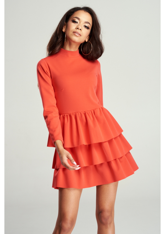 Keyana - Dopasowana sukienka midi z falbankami Różowa