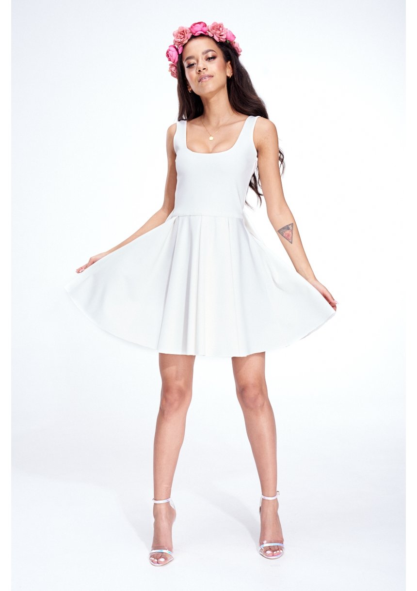 Liya - Sukienka z gorsetową wstawką i przeszyciami Beżowa