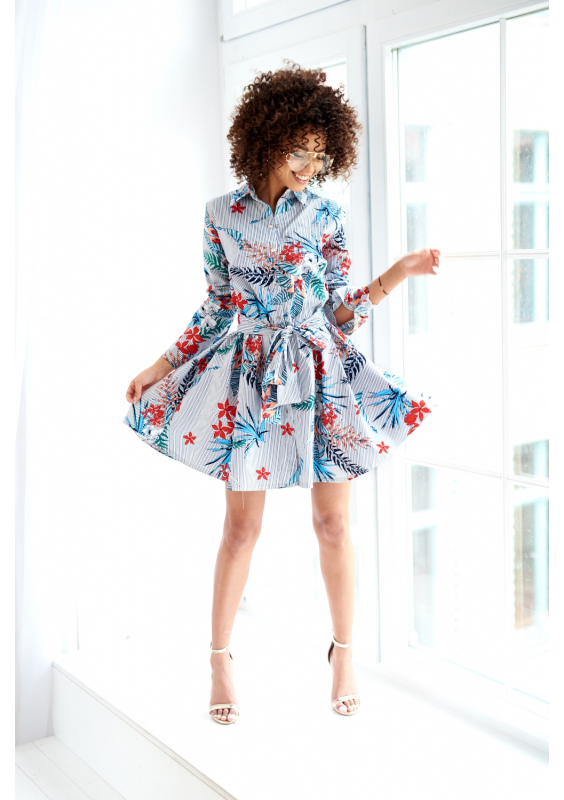 SUKIENKA O KOSZULOWYM KROJU Z POPELINY W KWIATY
