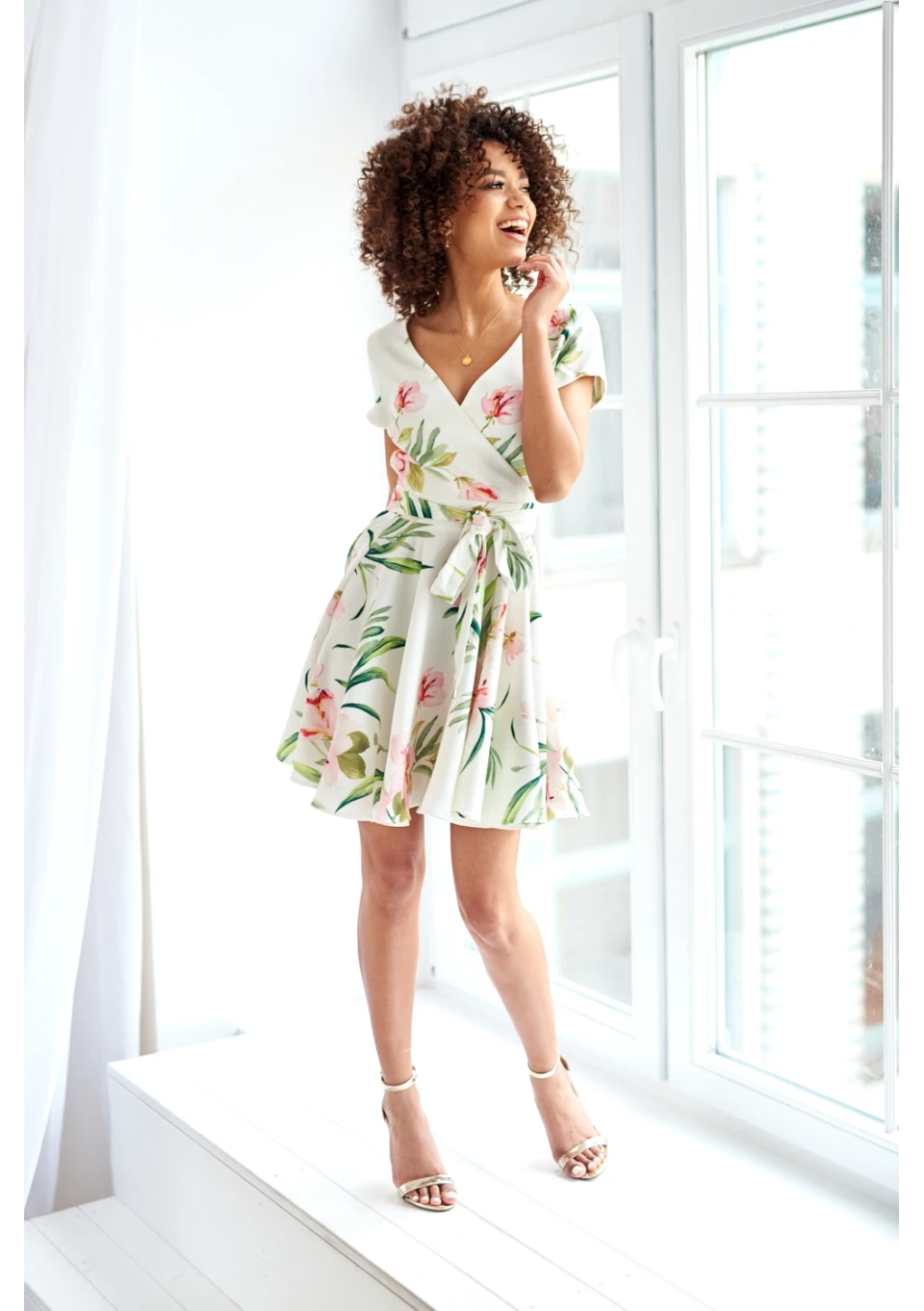 Suzie - Sukienka midi z wiązaniem Pastel Flowers