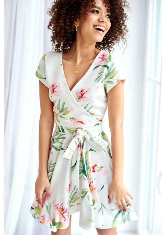 Nera - Kopertowa sukienka mini z poduszkami Creamy