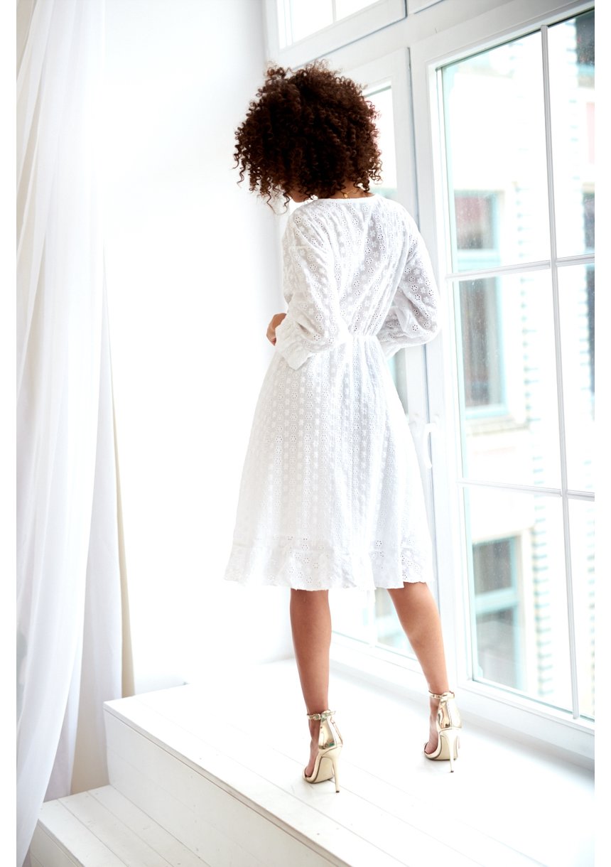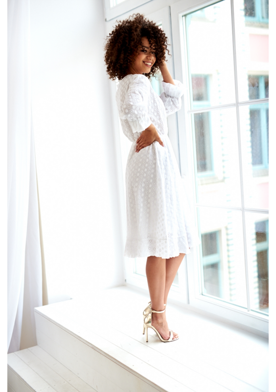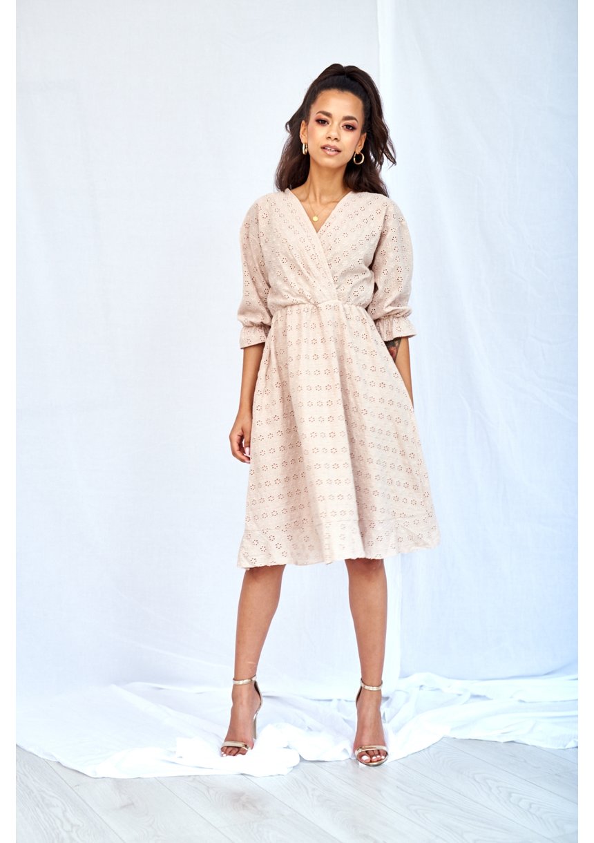 KOPERTOWA SUKIENKA MIDI Z AŻUROWEJ POPELINY